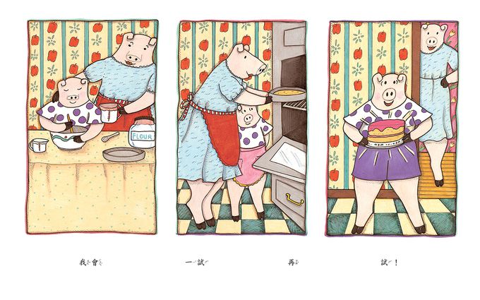 書中的主角是一隻開朗的小豬,她懂得照顧自己,也會在沒有人陪伴時找到樂趣。當她犯錯時,並不責怪自己,而是微笑著再試一次。這樣的態度不僅讓人感到愉快,更讓孩子明白,愛自己並不是驕傲或自戀,而是一種健康的自我接納,是面對挫折時最堅實的力量。