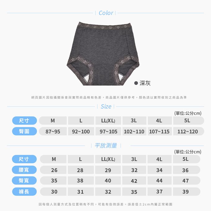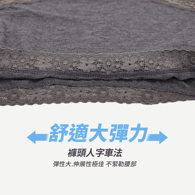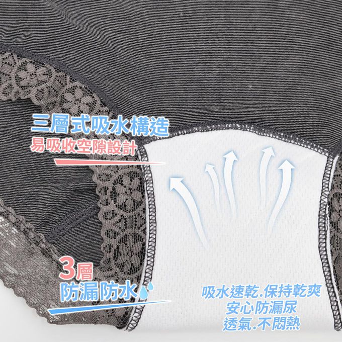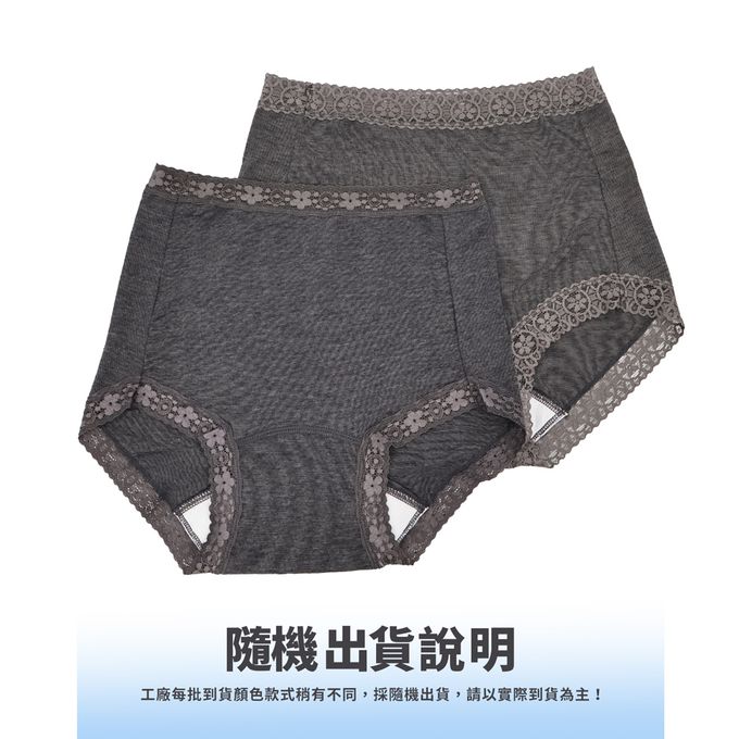 2件組-女用白竹炭紗防漏尿保潔內褲(50cc輕失禁適用)-褲腳蕾絲/隨機出貨-深灰