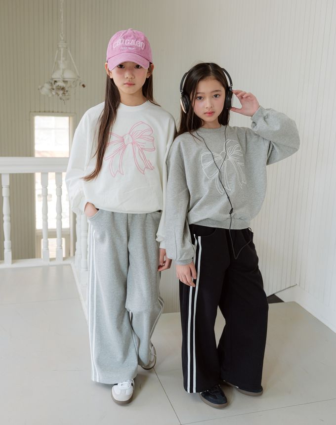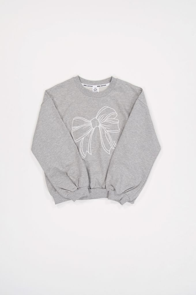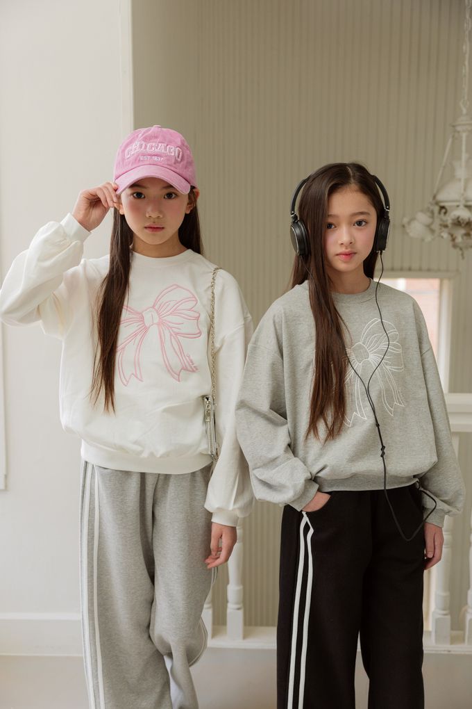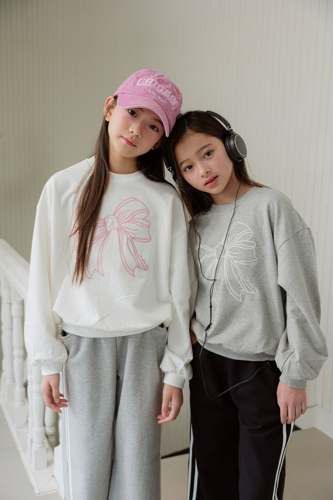 韓國南大門童裝 - sm2 刺繡蝴蝶結長袖大學T-淺灰