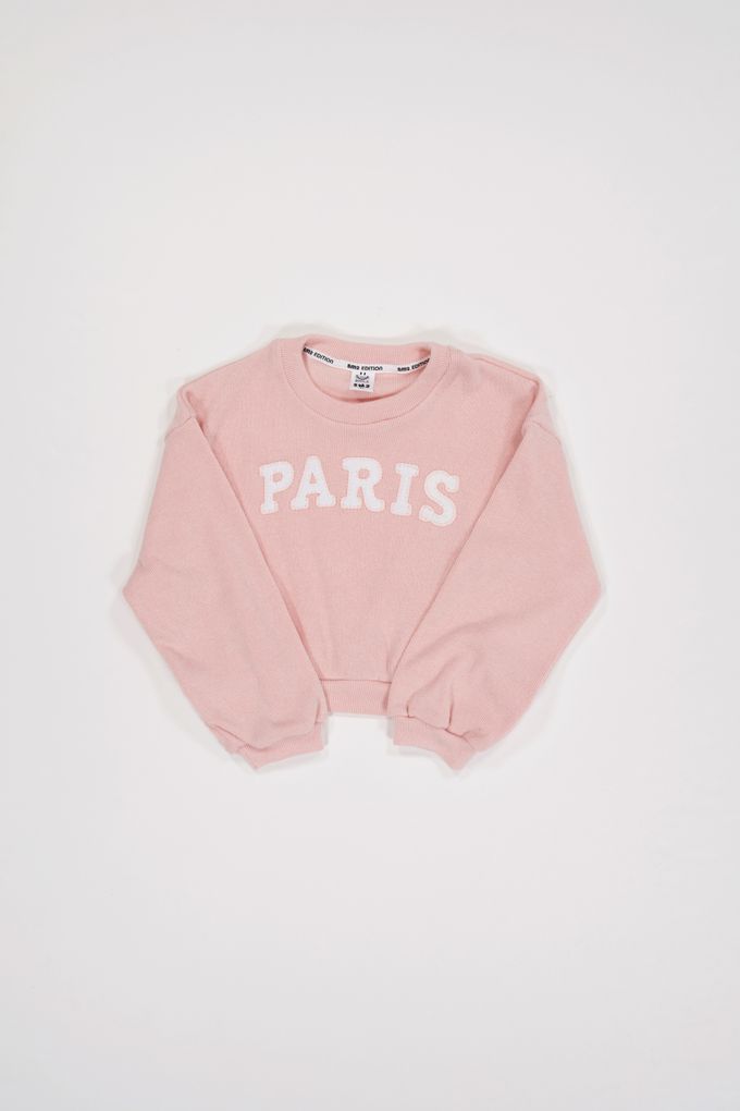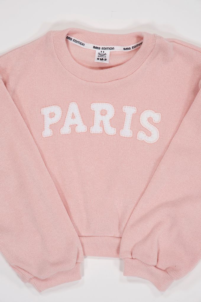 韓國南大門童裝 - sm2 拼布文字風格針織長袖上衣-PARIS-粉
