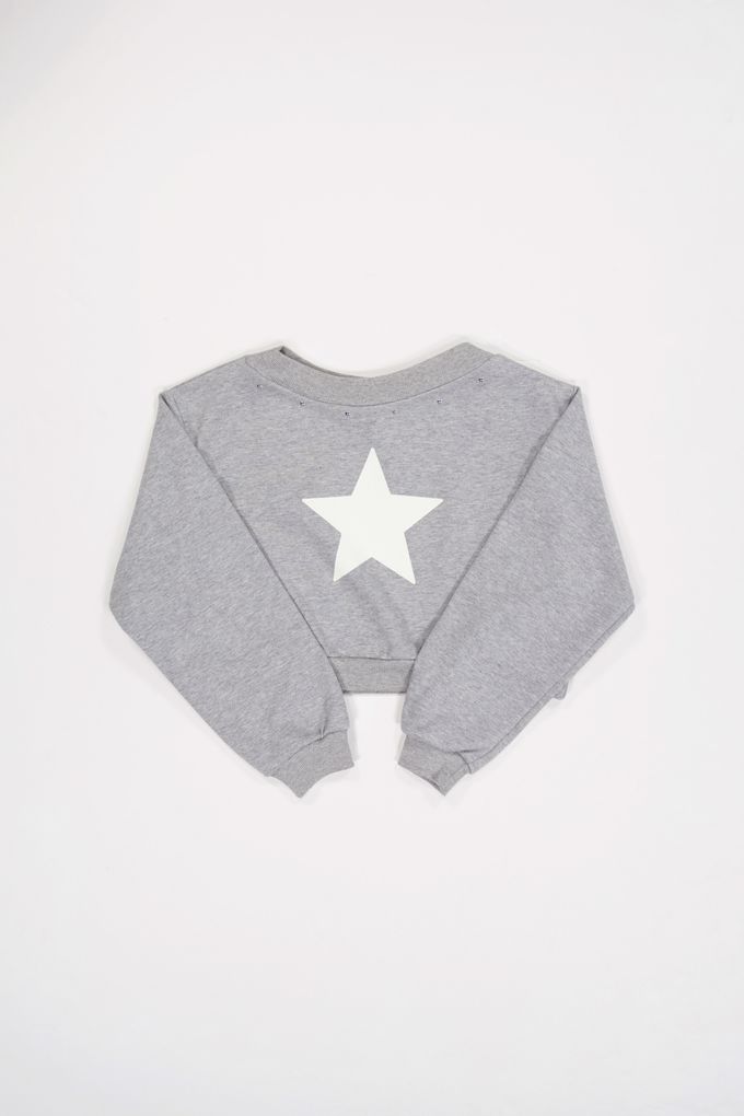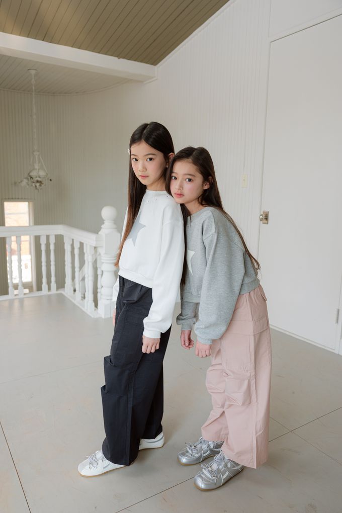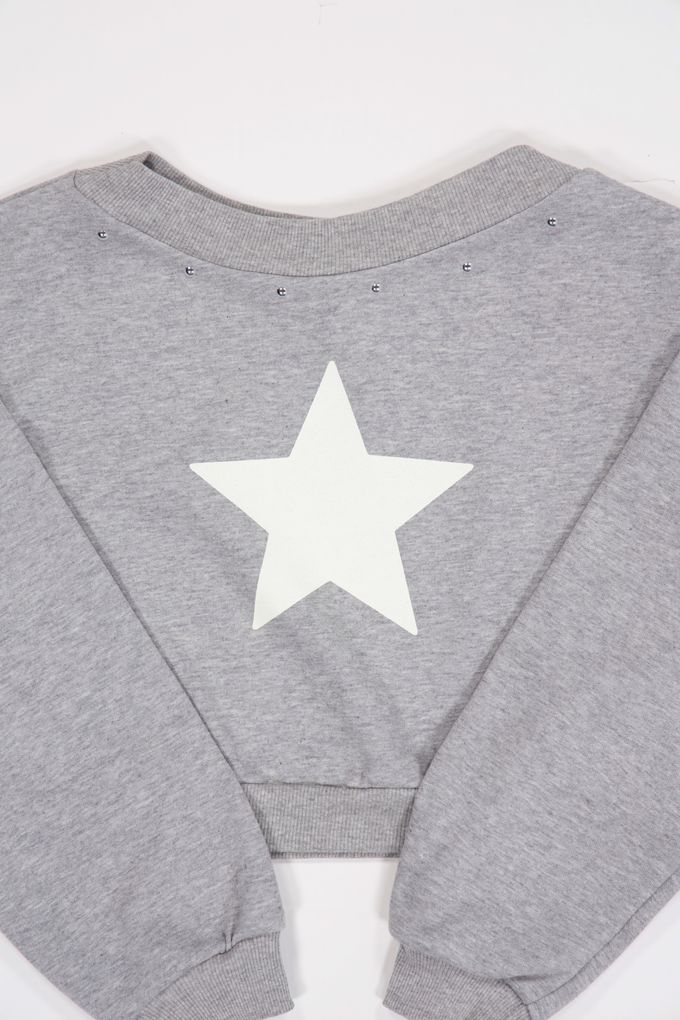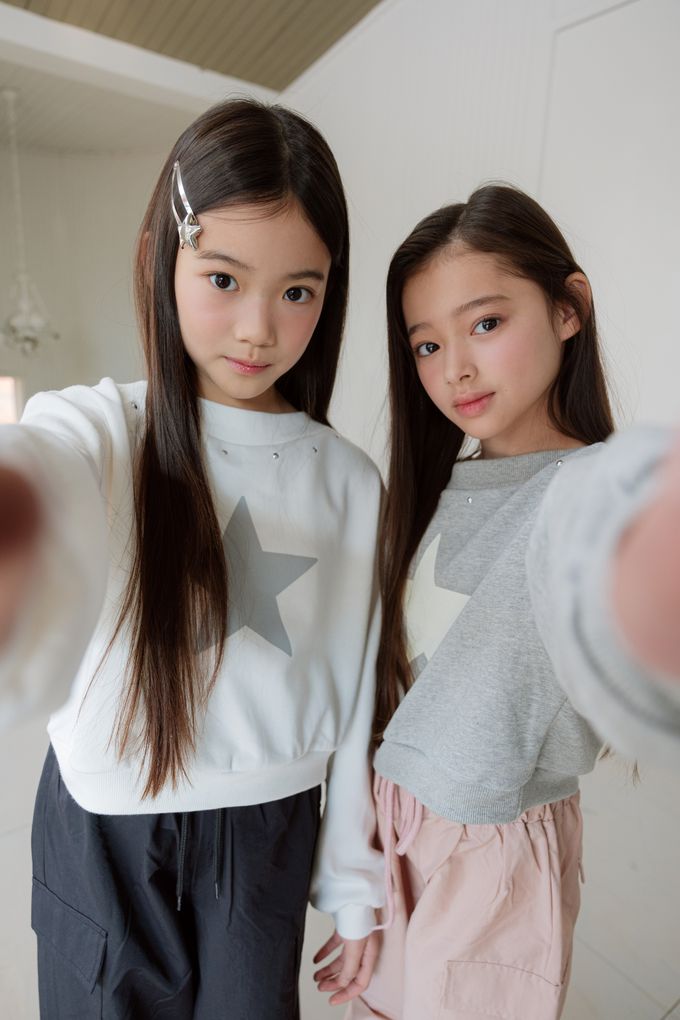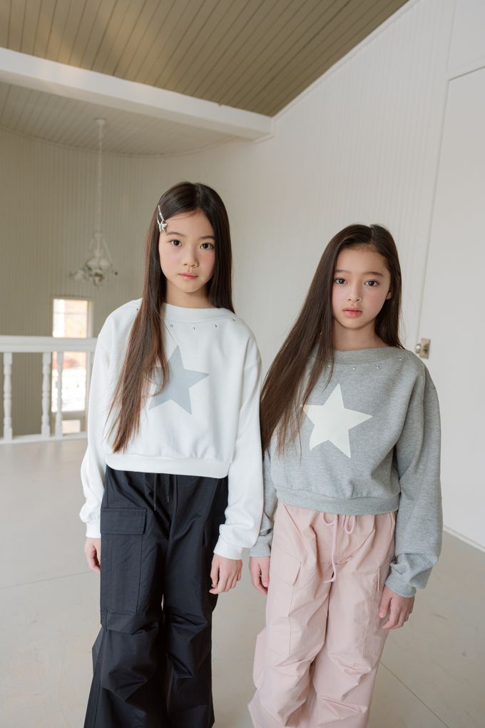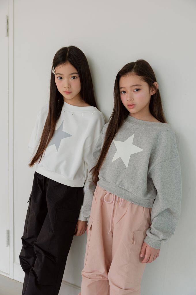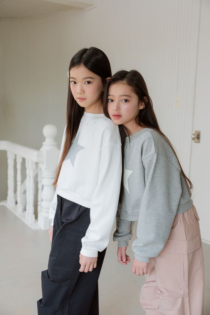 韓國南大門童裝 - sm2 星星鉚釘點綴短版長袖大學T-淺灰