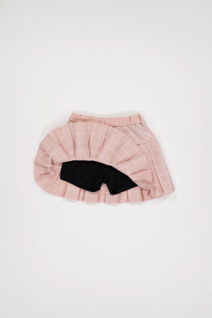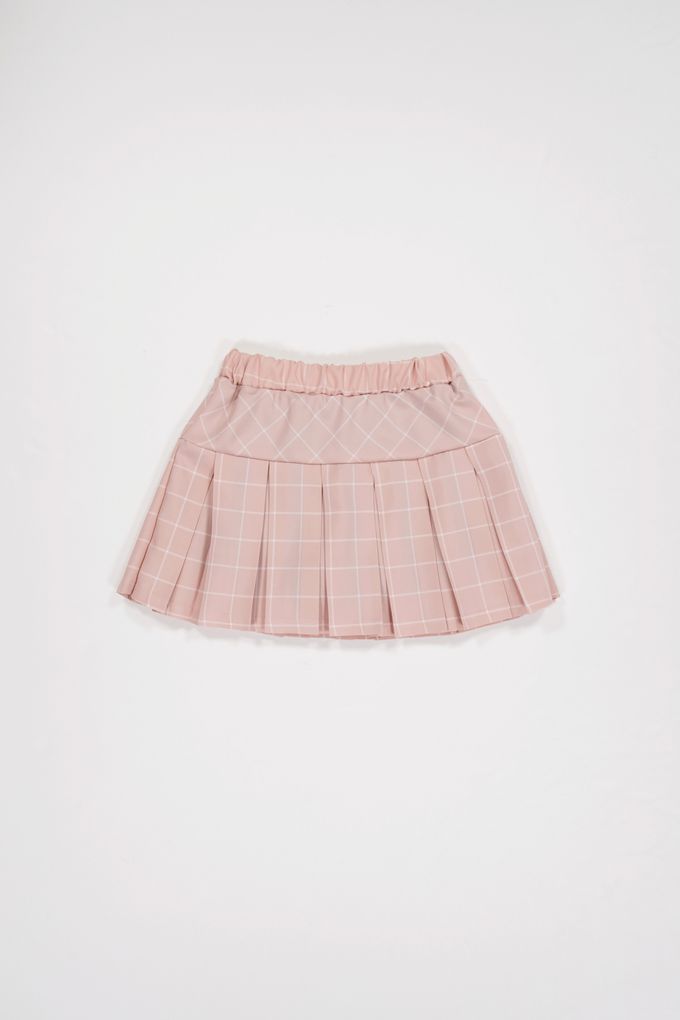 韓國南大門童裝 - sm2 鬆緊腰格紋學院風百褶短裙-粉