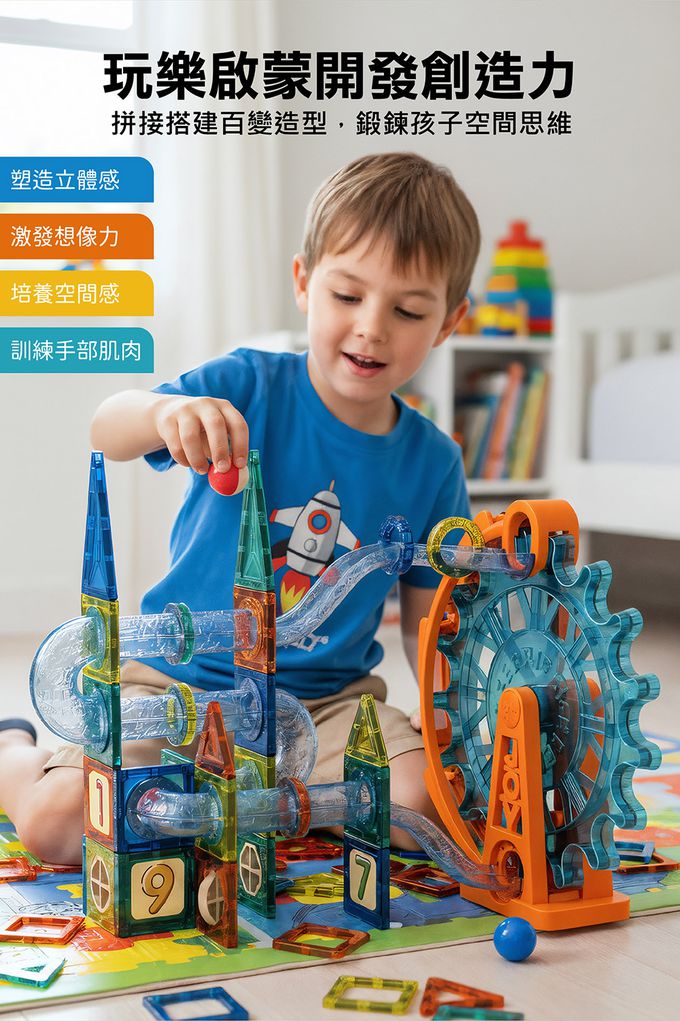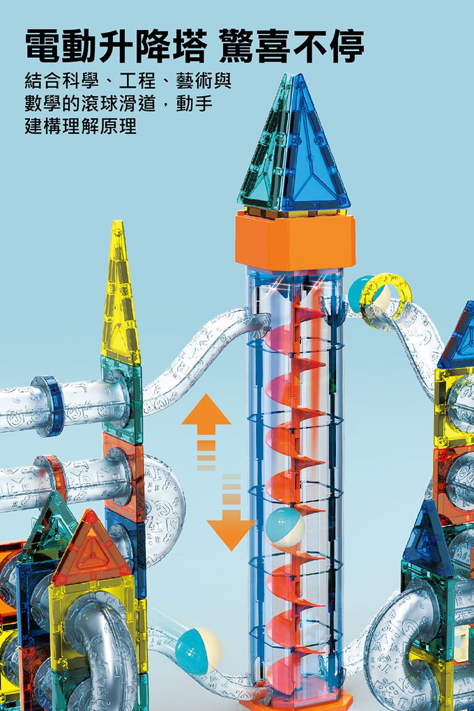 STEAM摩天樂園滑道滾球-FOOD超人創意磁力片