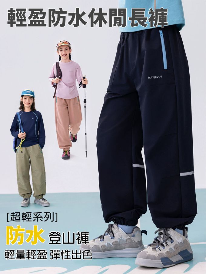 babybody - 輕盈防水休閒長褲-安全反光條-卡其色