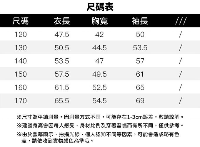 120cm、130cm、140cm、150cm、160cm、170cm