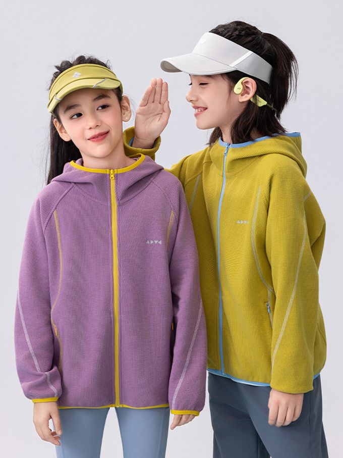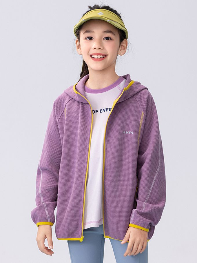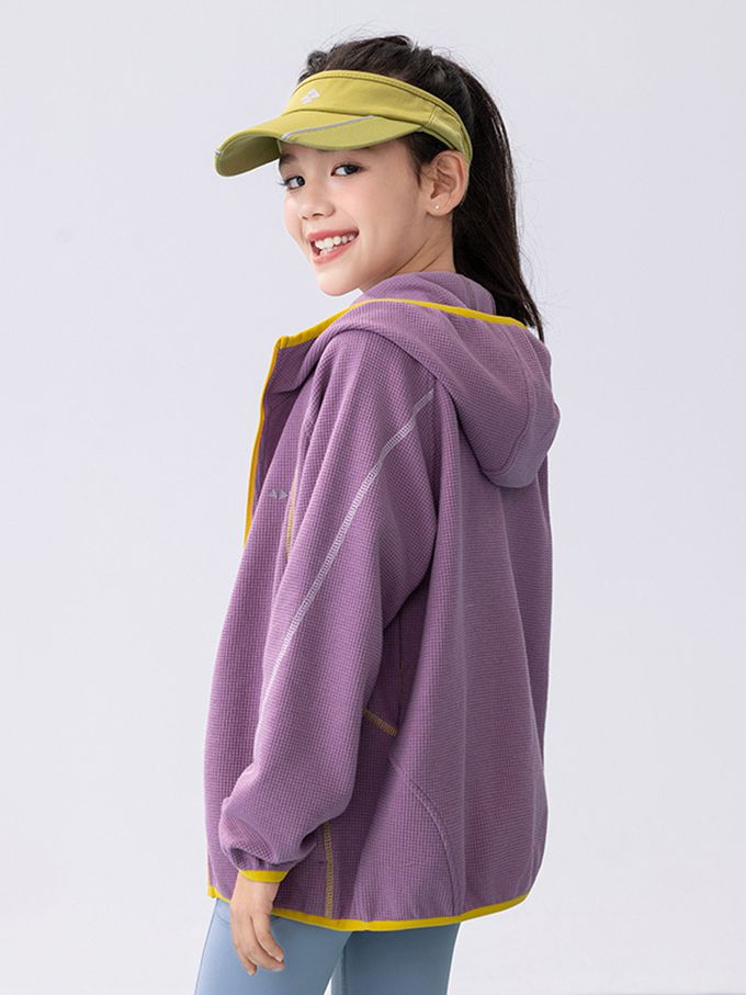 撞色華夫格連帽外套-紫色