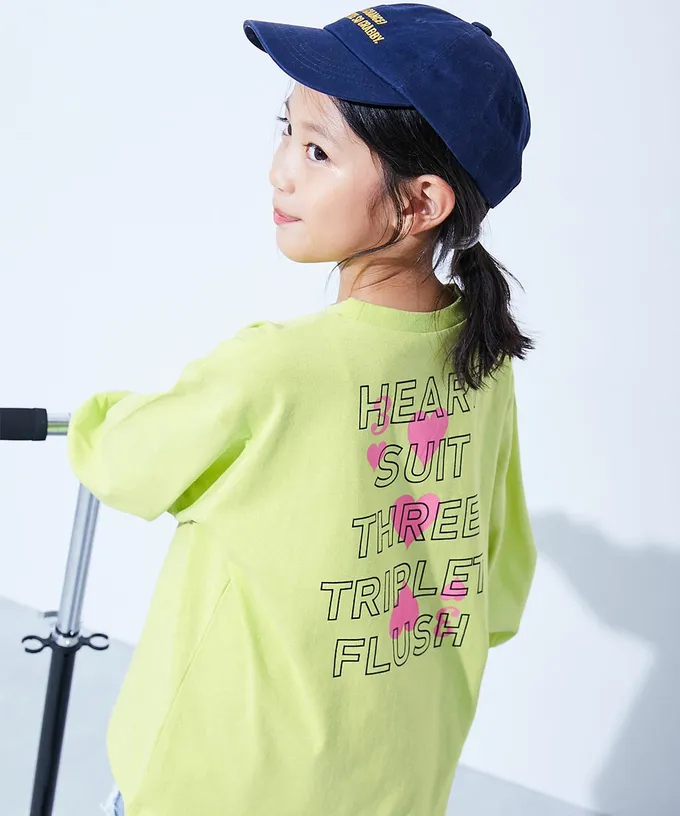 日本 devirock - 100%棉 女孩寬版長袖T恤-大愛心-桃粉紅