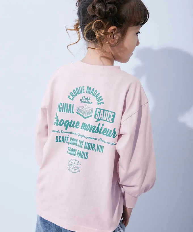 日本 devirock - 100%棉 女孩寬版長袖T恤-背後花園-淺灰棕
