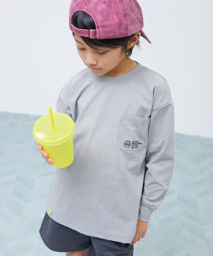 日本 devirock - [快乾防皺] 簡約運動風長袖上衣-胸前徽章-卡其棕