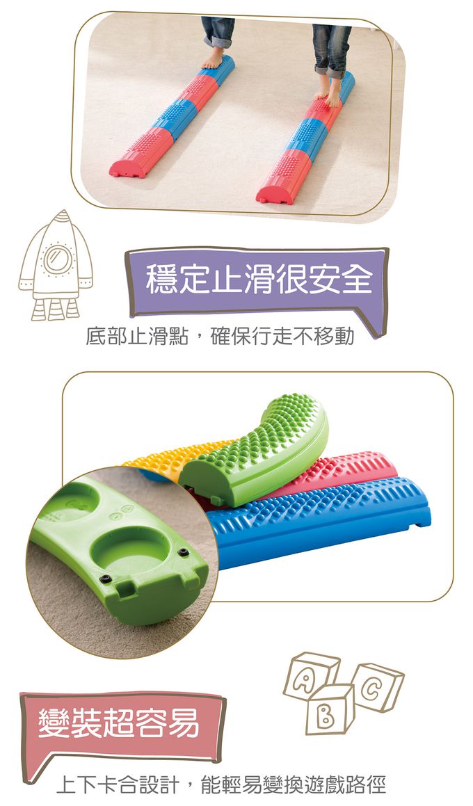 商品尺寸:長47.9cm × 寬13.5cm × 高7cm/單片組件明細:紅色4片、藍色4片,共8片。商品材質:PE、TPE產地:台灣★通過歐盟CE產品品質認證與美國ASTM安規