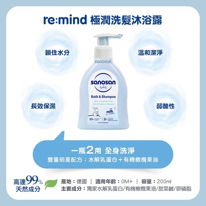 成分:《洗髮沐浴露》獨家水解乳蛋白、有機橄欖果油、甜菜鹼、卵磷脂;《乳液》獨家水解乳蛋白、有機橄欖果油、維生素原B5、母菊花萃取、乳油木果油、向日葵子油;《全效修護膏》獨家水解乳蛋白、有機橄欖果油、氧化鋅、維他命原B5、甘油