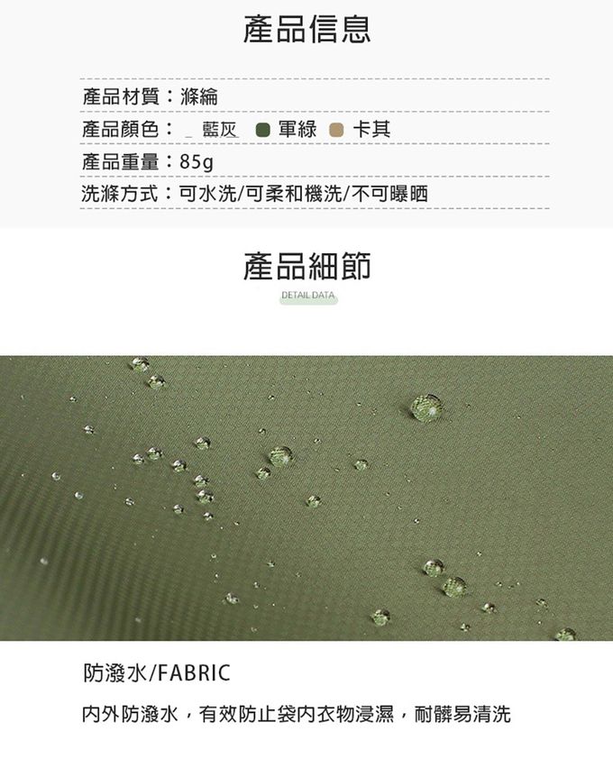 防潑水、高密度滌綸、針織抗撕裂復合材質