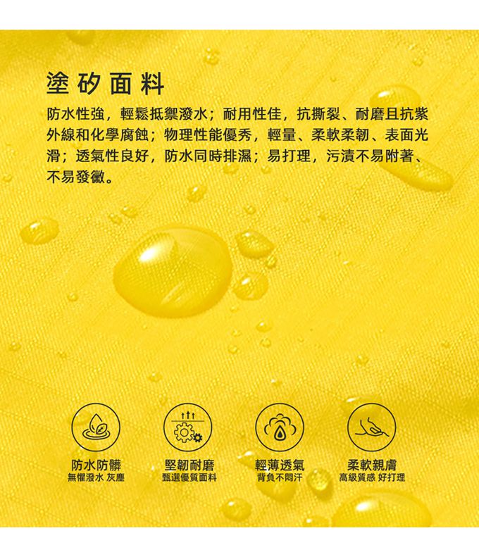 防水性強、耐用性佳、抗撕裂、透氣性良好