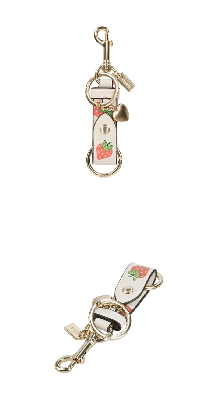 印花皮革鎖釦鑰匙圈/吊飾 (草莓)