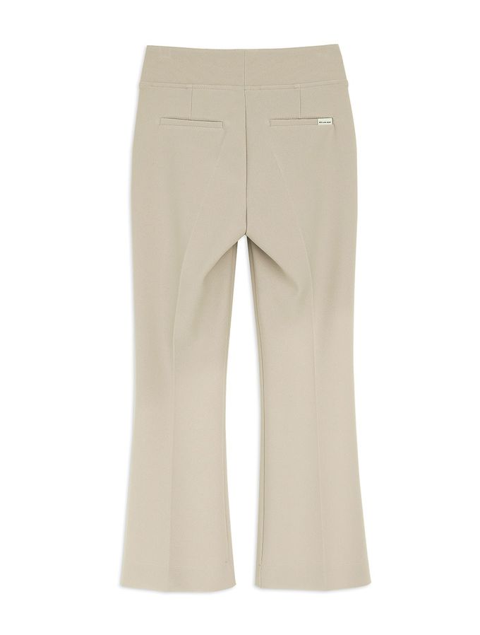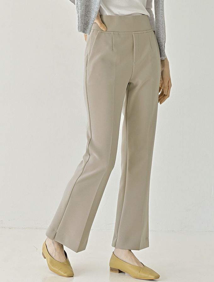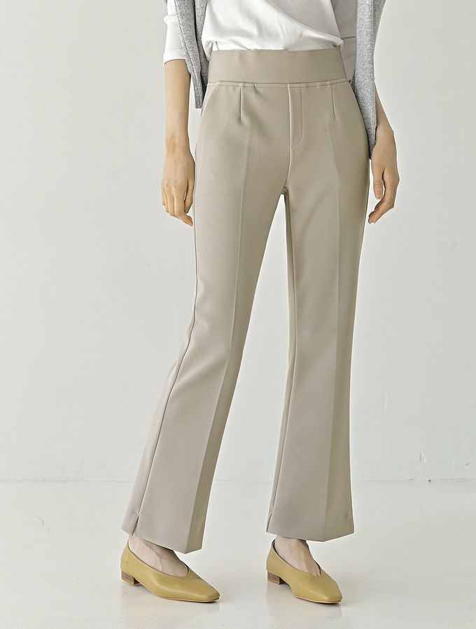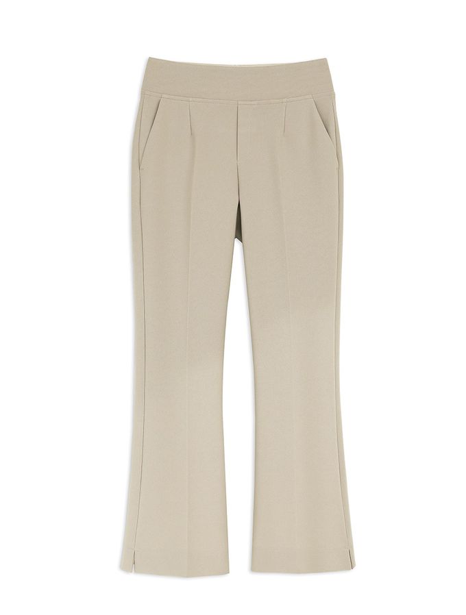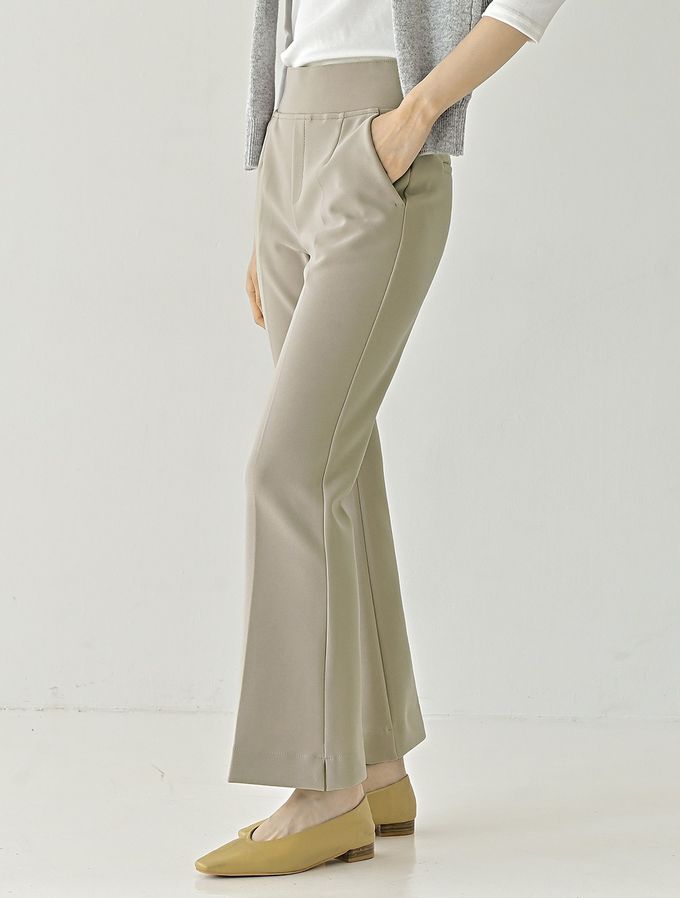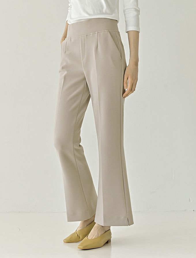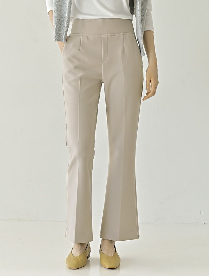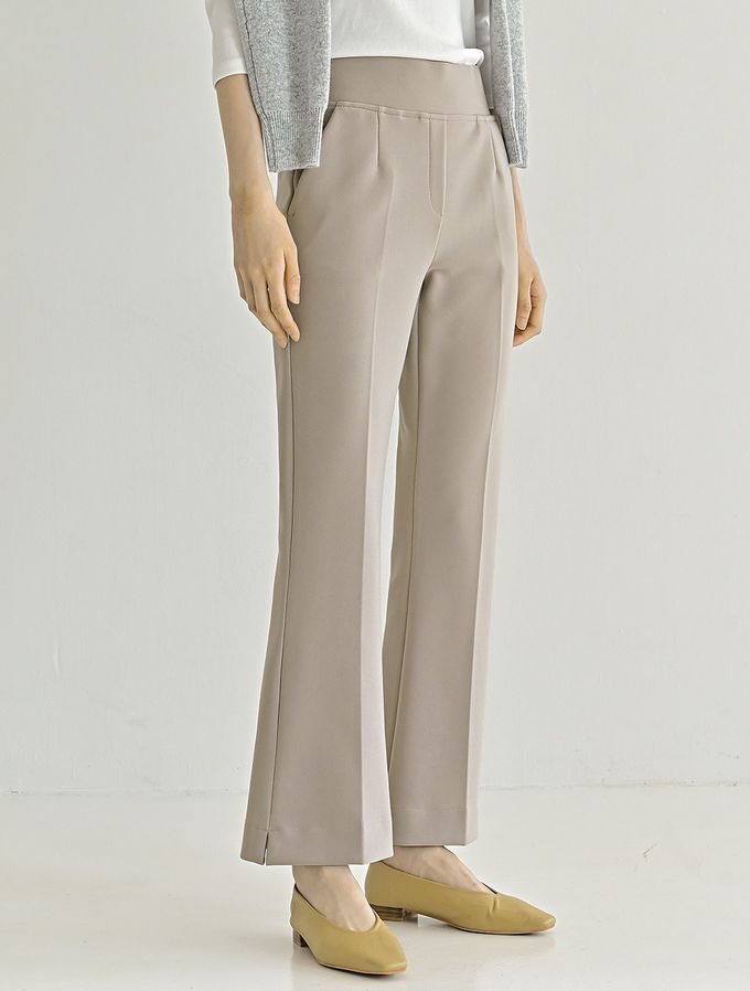 韓國女裝連線 - Domingoblue 彈性腰職感小開衩喇叭西裝褲-卡其