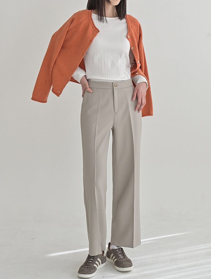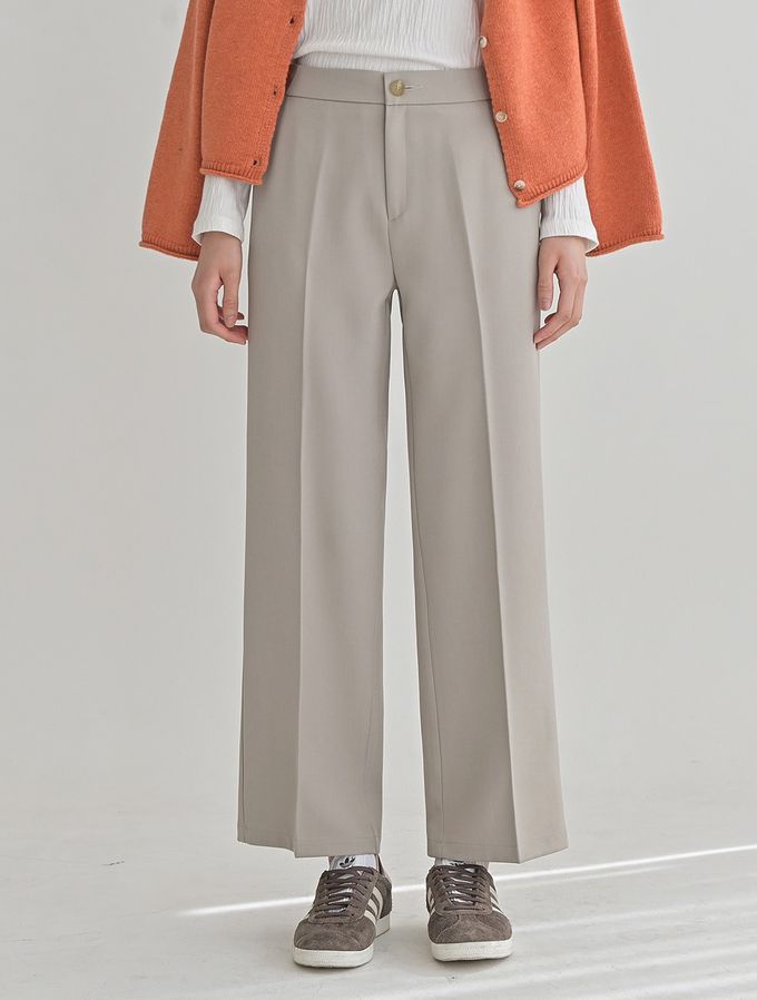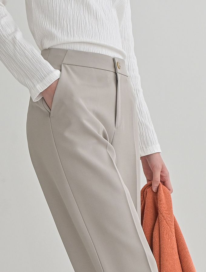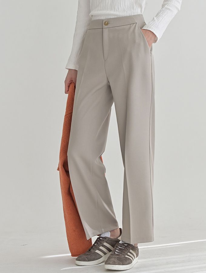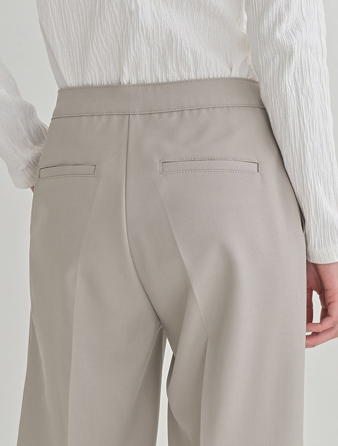 韓國女裝連線 - Domingoblue 後鬆緊腰職感直筒西裝褲-灰卡其