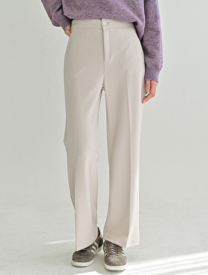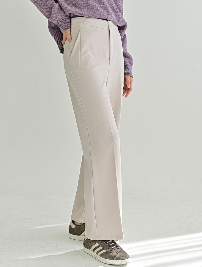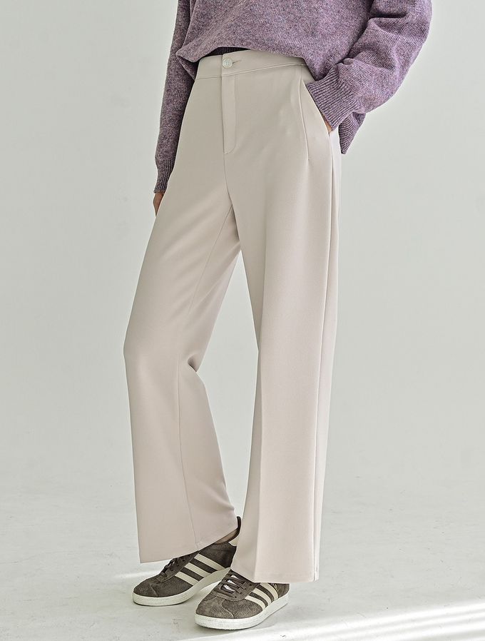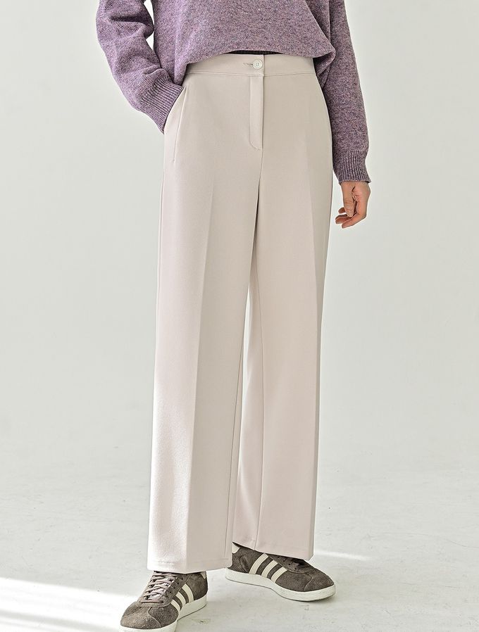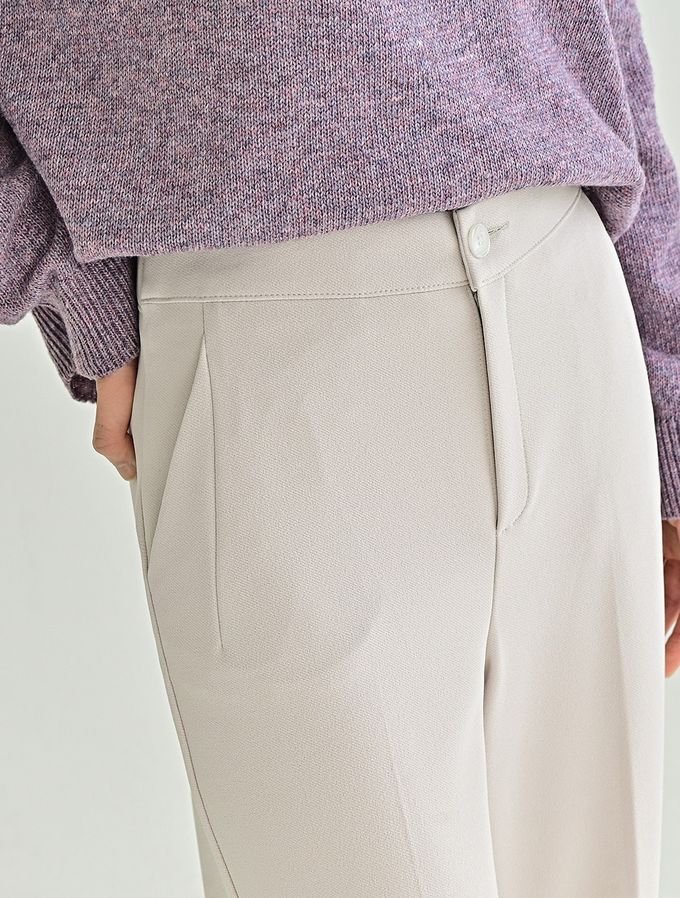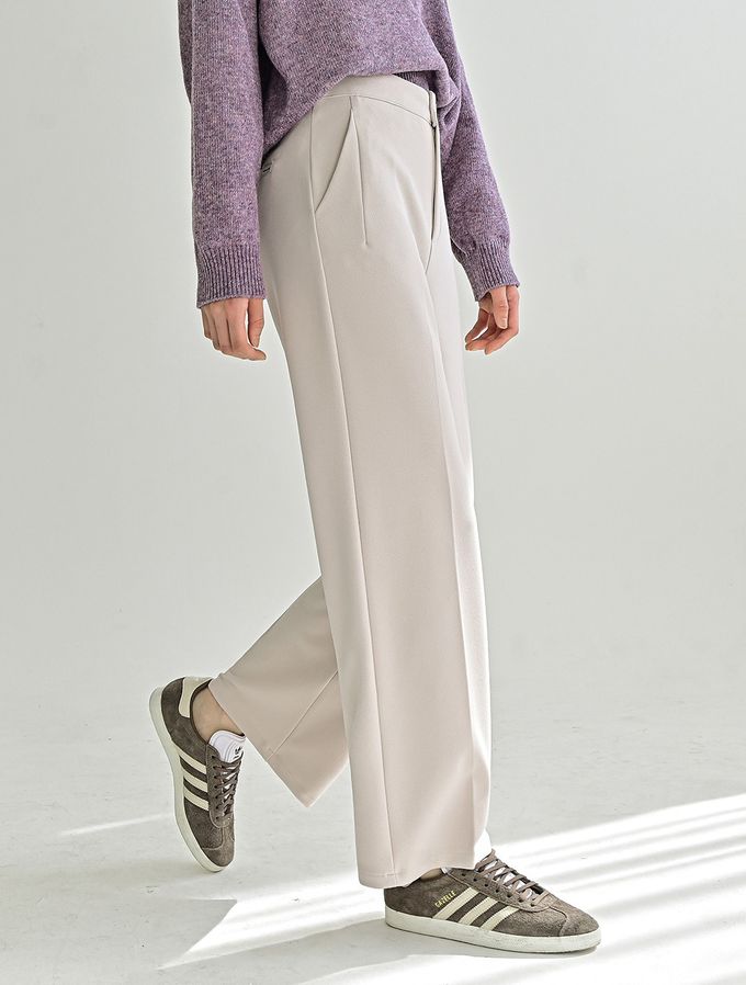韓國女裝連線 - Domingoblue 後鬆緊職感寬鬆彈力西裝褲-象牙白