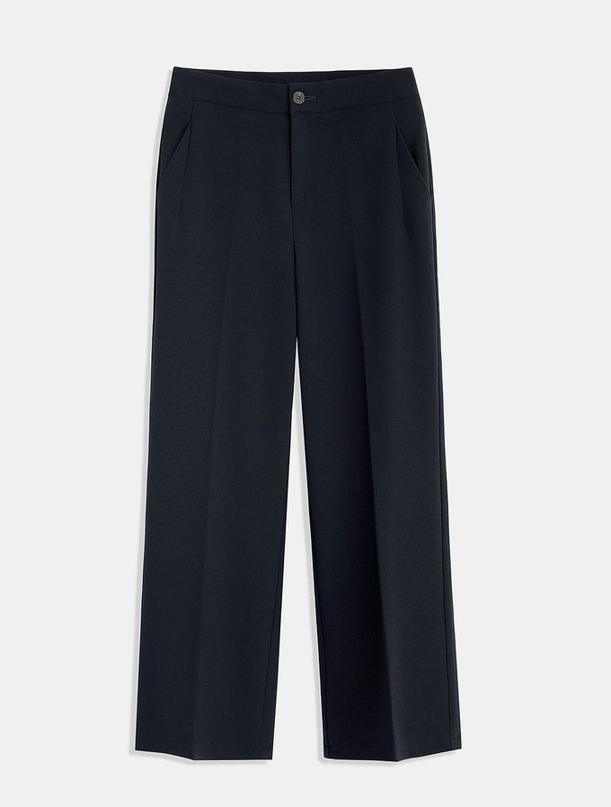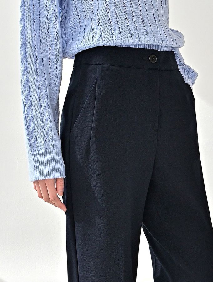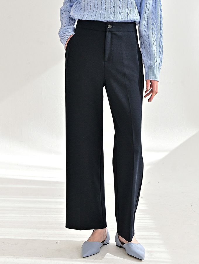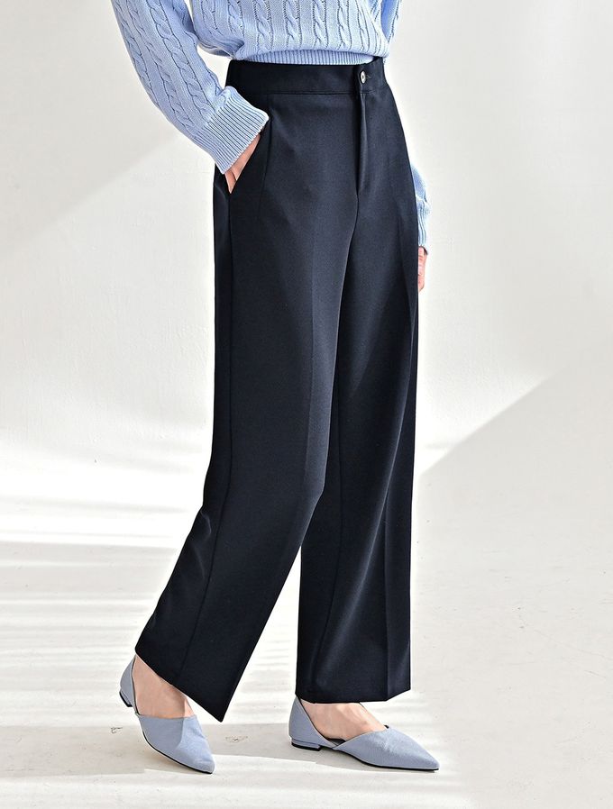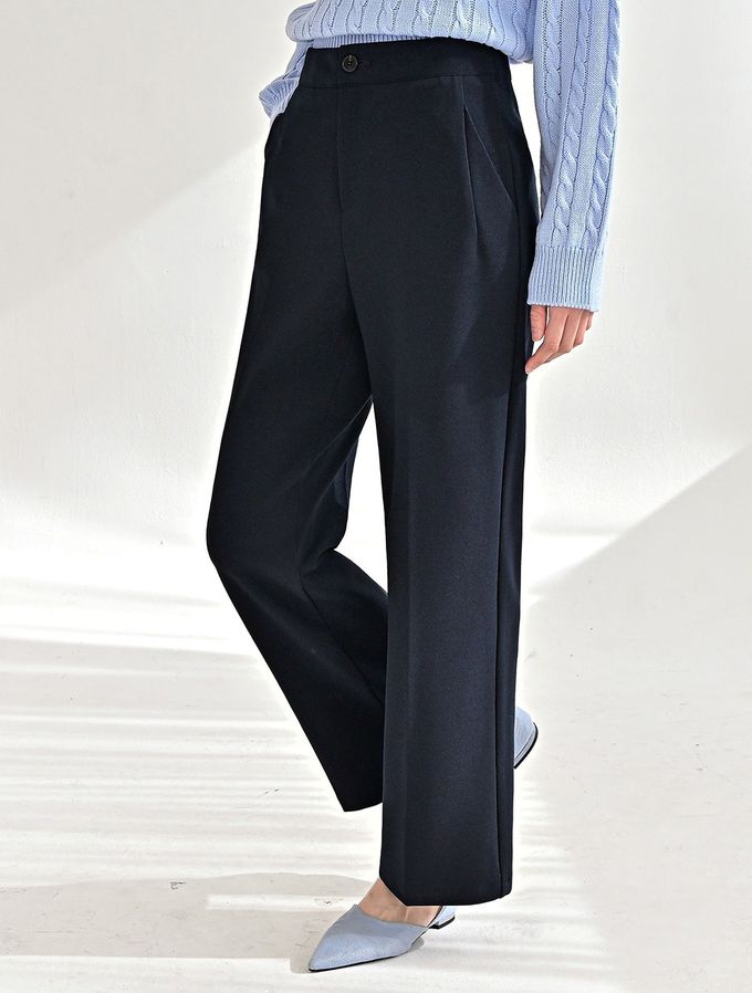 韓國女裝連線 - Domingoblue 後鬆緊職感寬鬆彈力西裝褲-海軍藍