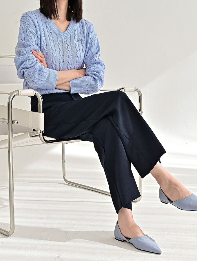 • 品名:Domingoblue 後鬆緊職感寬鬆彈力西裝褲