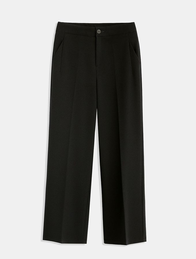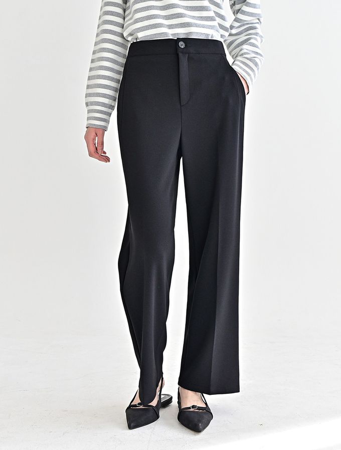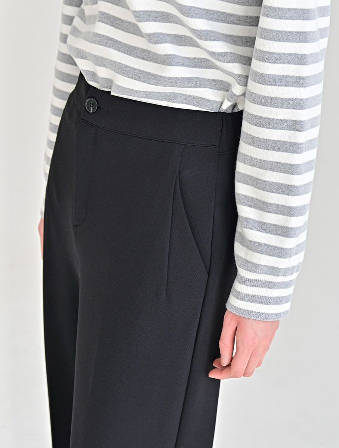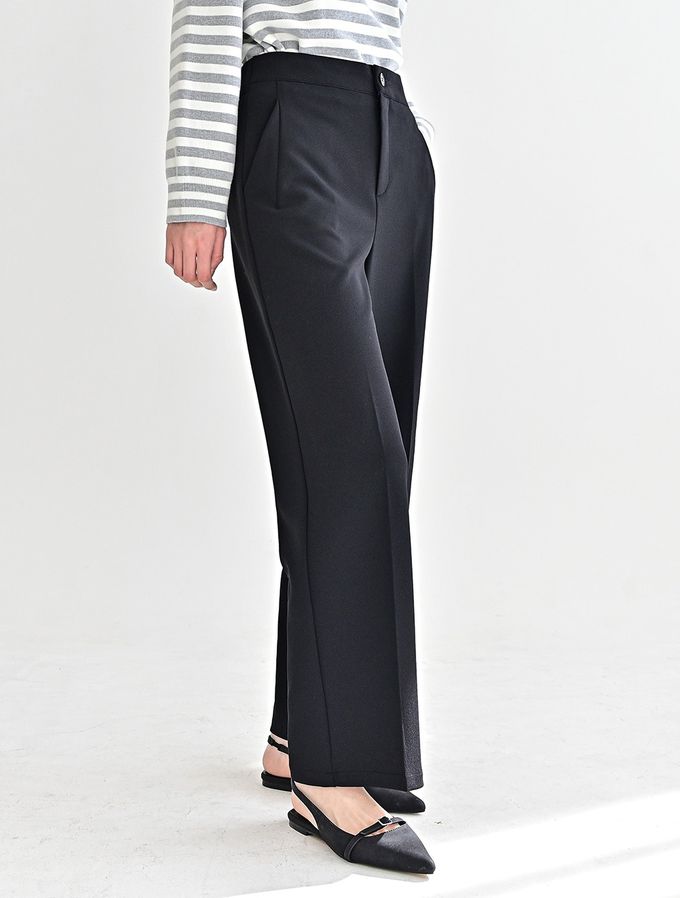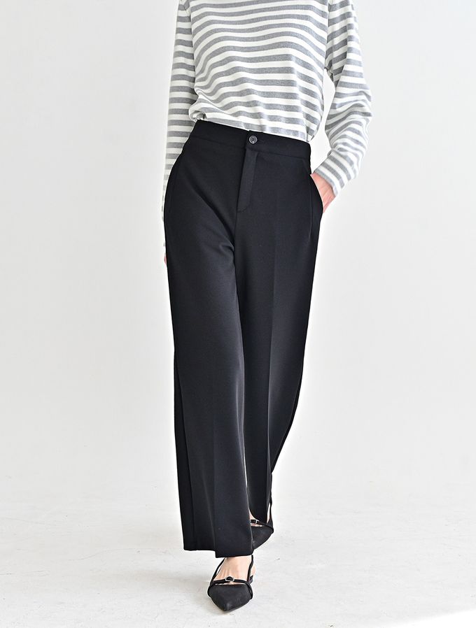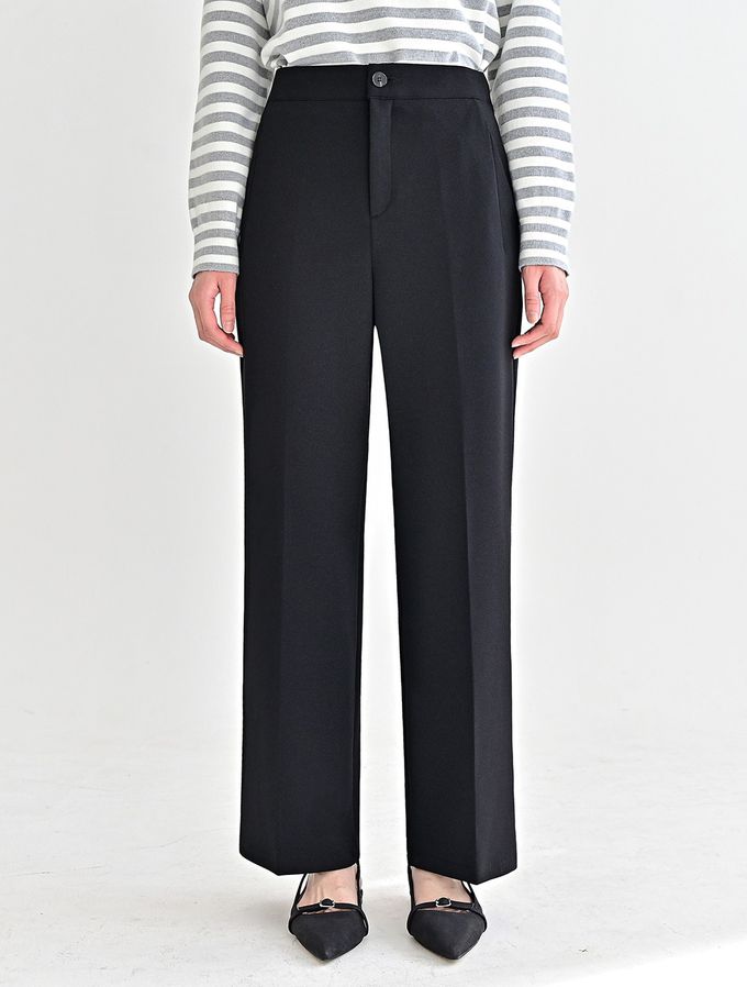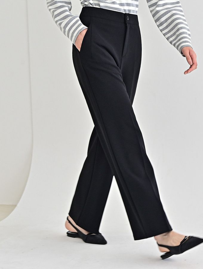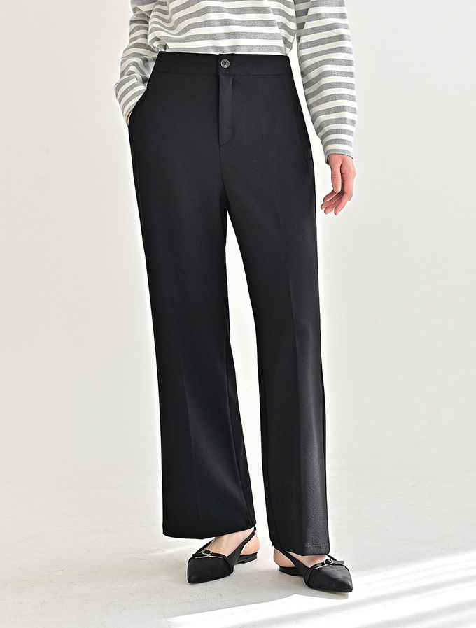 韓國女裝連線 - Domingoblue 後鬆緊職感寬鬆彈力西裝褲-黑