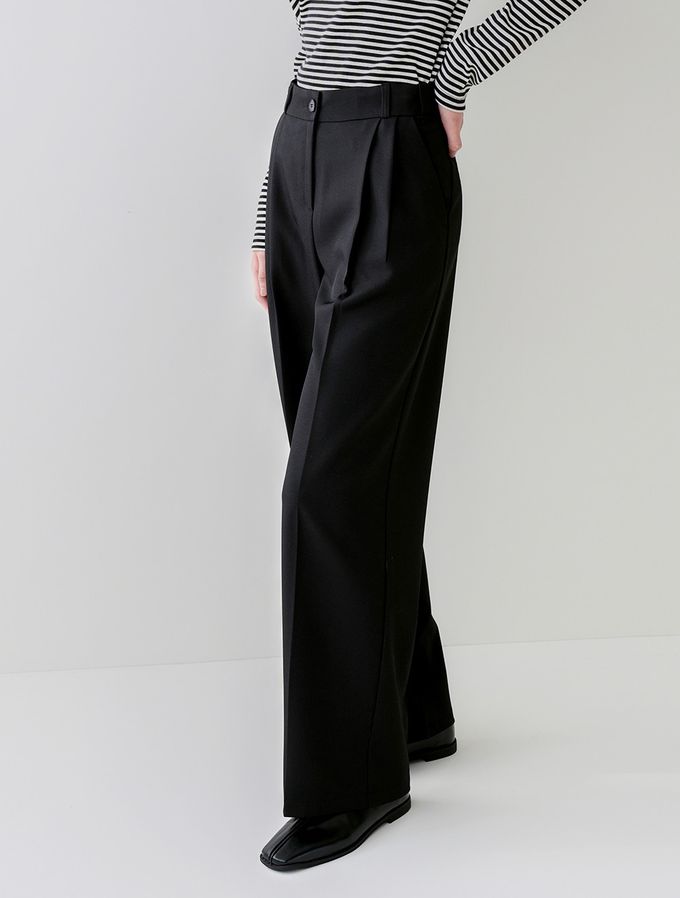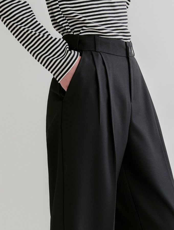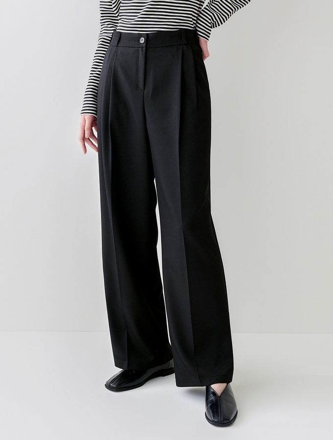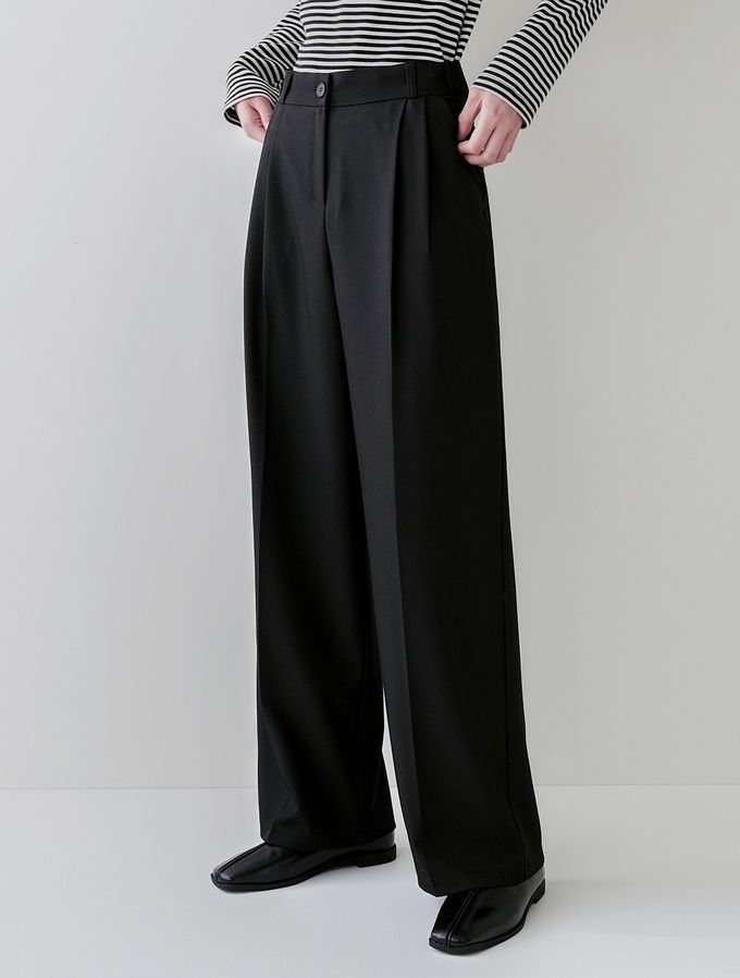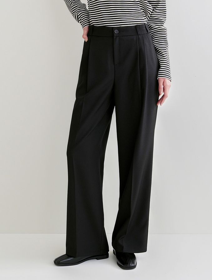 韓國女裝連線 - Domingoblue 鬆緊腰職感抓褶寬鬆西裝褲-黑