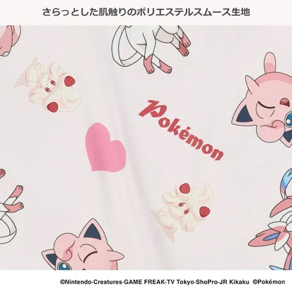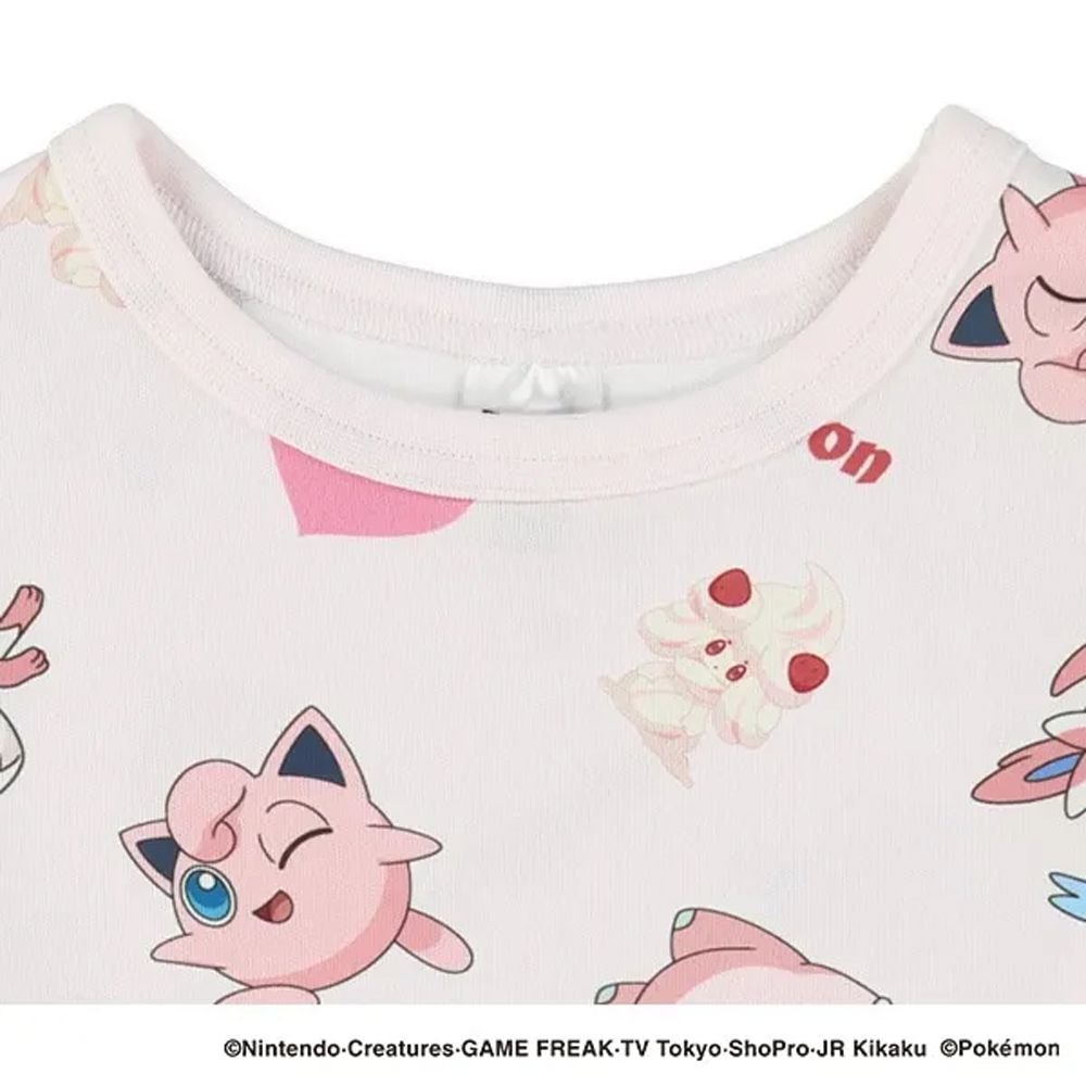 日本西松屋 - 卡通人物寶可夢印花長袖上衣-胖丁-粉紅x白