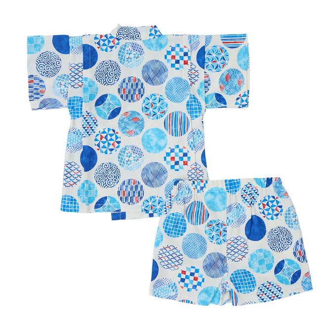 幼兒兩件式甚平-圓形和風圖案-米白色