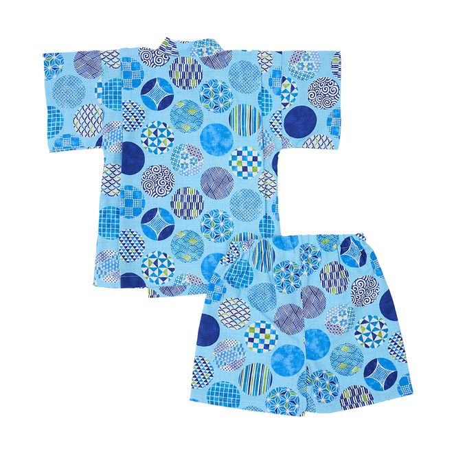 幼兒兩件式甚平-圓形和風圖案-淺藍色