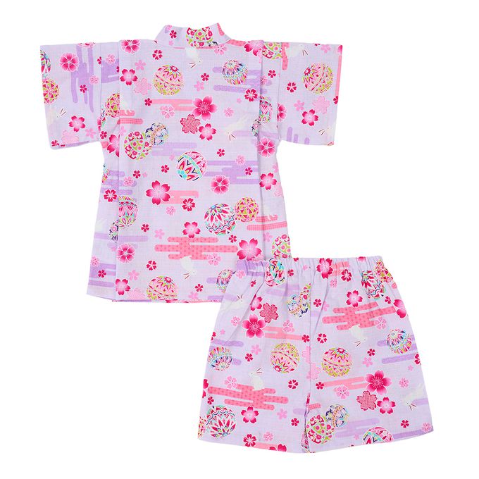 兒童兩件式甚平-兔子鞠球圖案-紫色