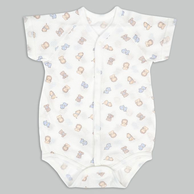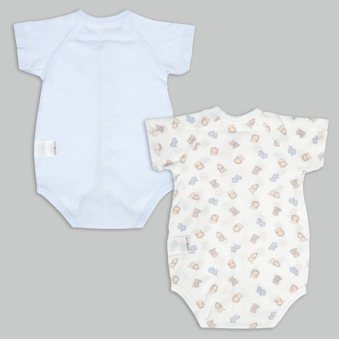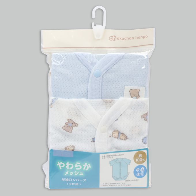 akachan honpo - 短袖網眼包屁衣2件組 前開式-小熊-淺藍色