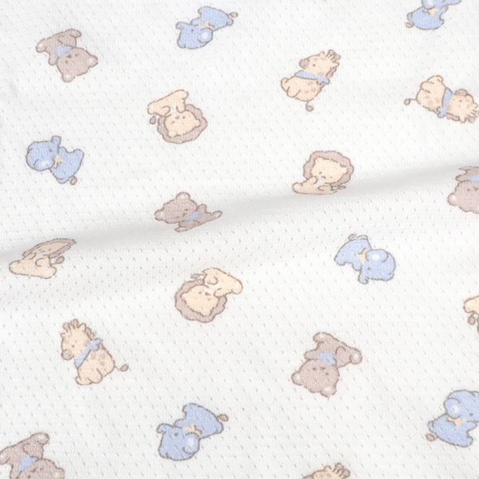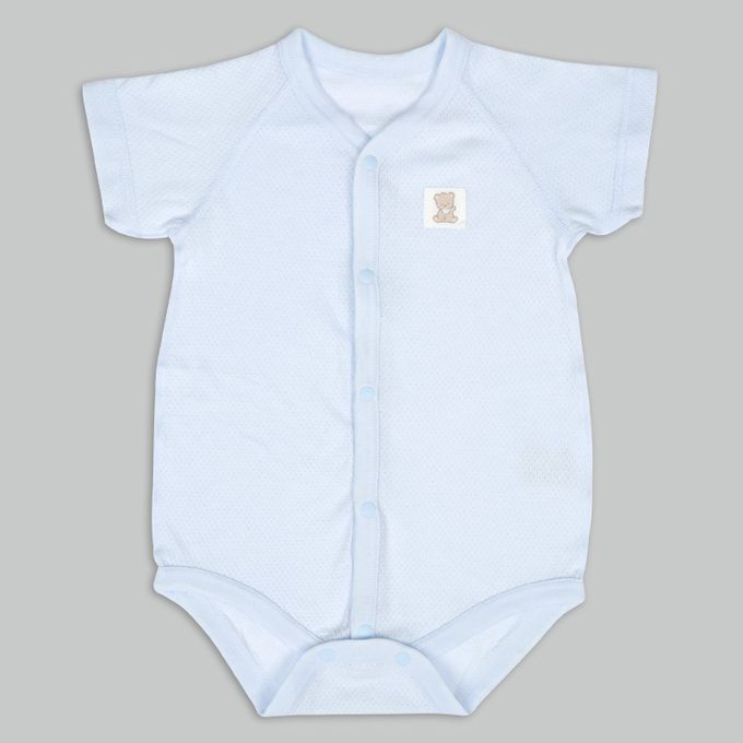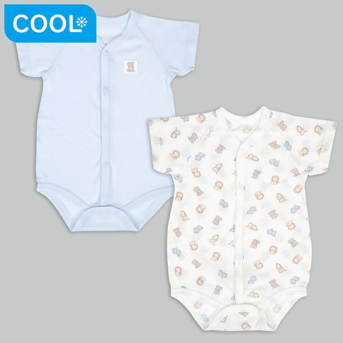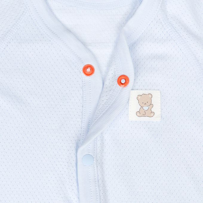 短袖網眼包屁衣2件組 前開式-小熊-淺藍色