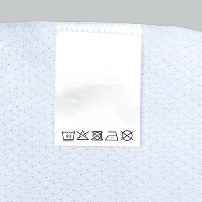 注意事項:●標示內容遵照台灣法規之規定。●請使用不含螢光增白劑的洗劑。●請勿熨燙釦子部分。●熨燙請使用墊布。