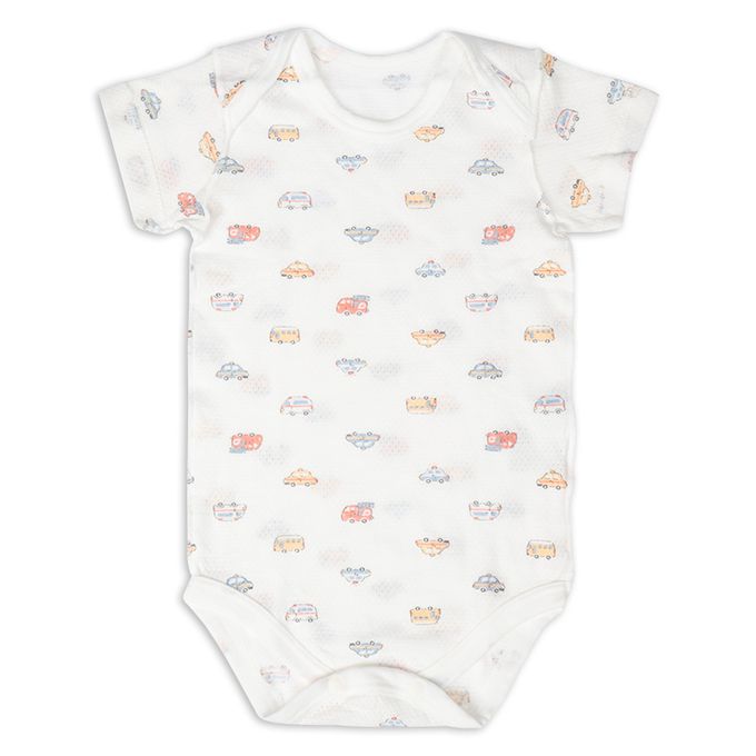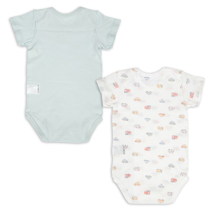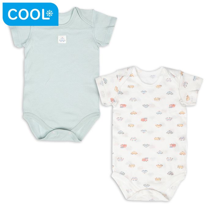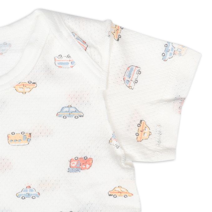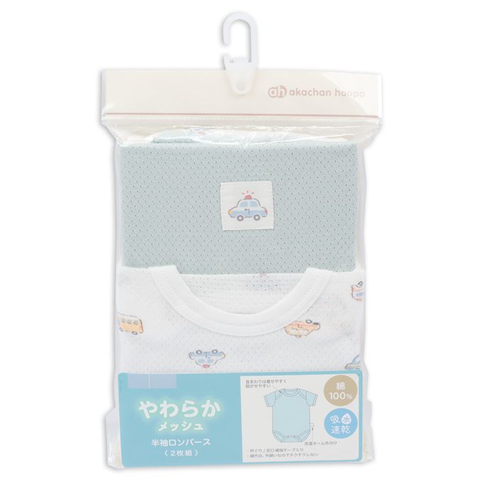 akachan honpo - 短袖網眼包屁衣2件組 套頭式-汽車-綠色