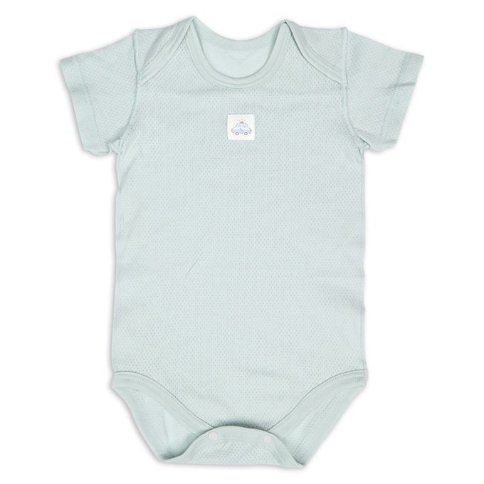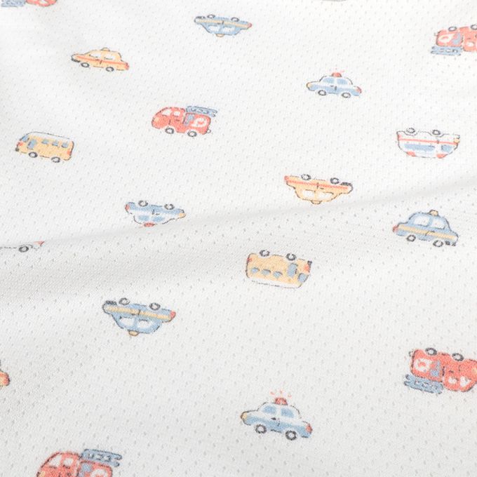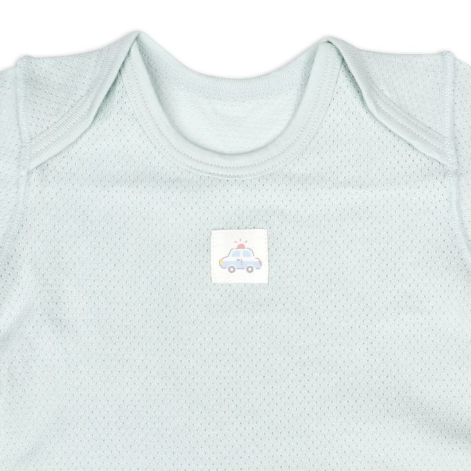 短袖網眼包屁衣2件組 套頭式-汽車-綠色