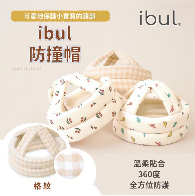 ibul防撞帽-格紋-淺卡其色 (頭圍:42~50cm深:13cm)