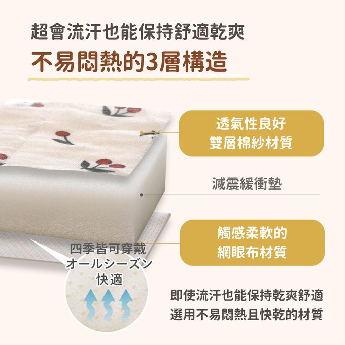 ・採用三層構造,即使很會流汗的寶寶也能保持舒適乾爽。