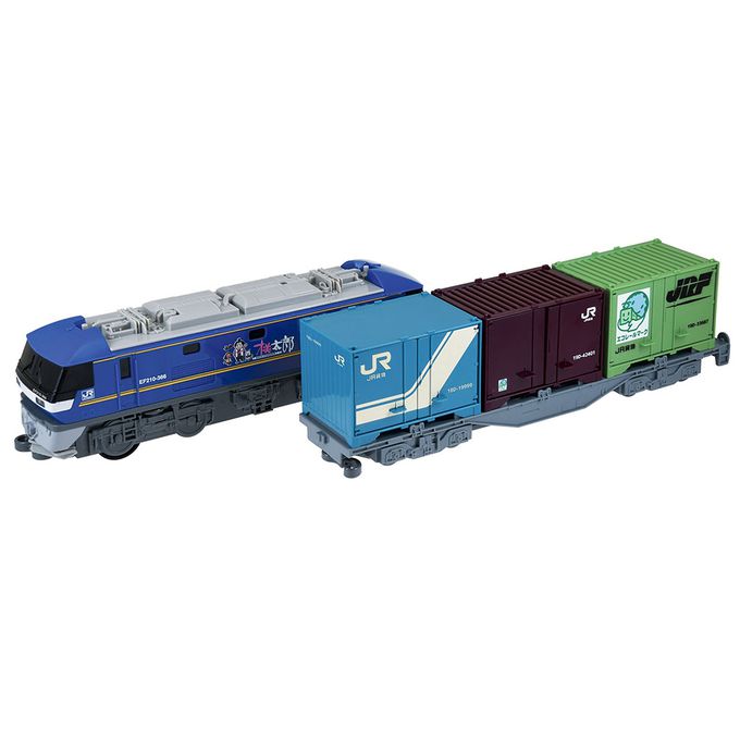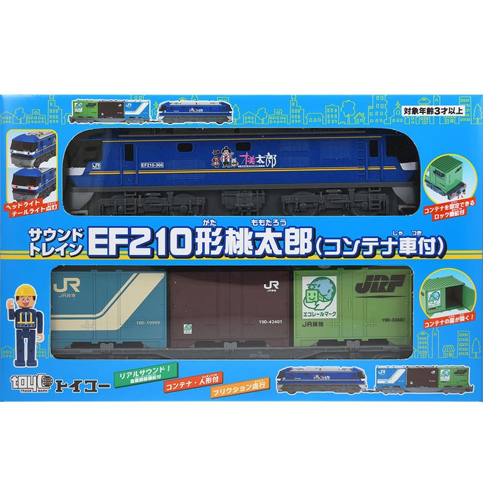 ・摩擦行走設計(火車頭)・滑行設計(貨車)・電源 ON/OFF 開關・逼真音效・音量調節功能(兩段式)・車頭燈・尾燈・貨櫃鎖定功能・附連結器・附3個貨櫃・附1個人偶