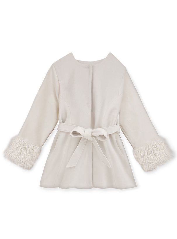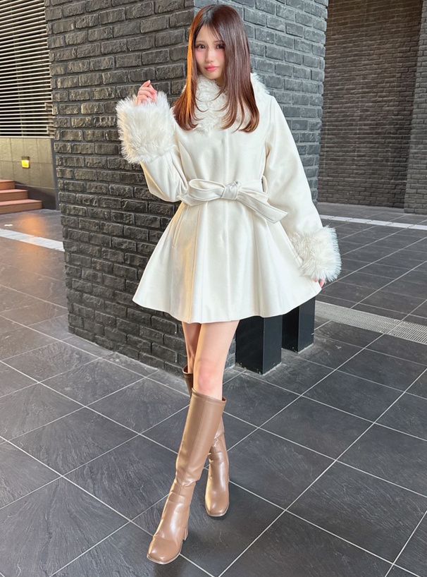 日本 GRL - 華麗毛絨傘型優美大衣外套(毛領可拆)-象牙米