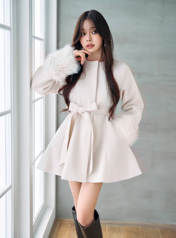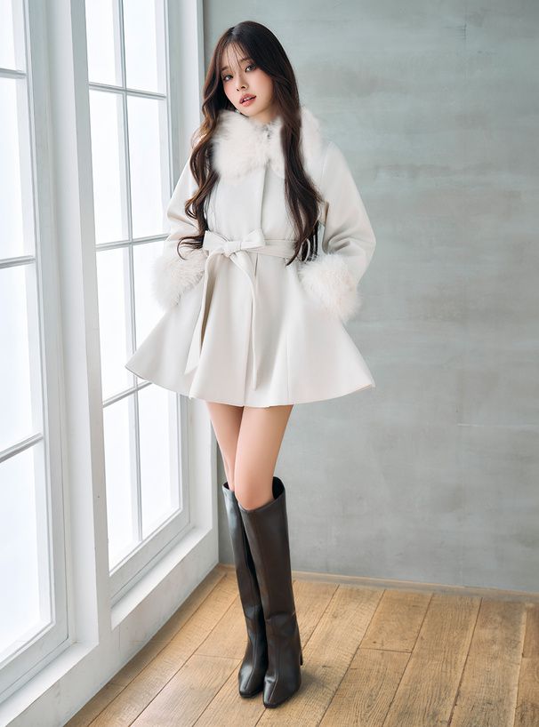 • 品名:華麗毛絨傘型優美大衣外套(毛領可拆)