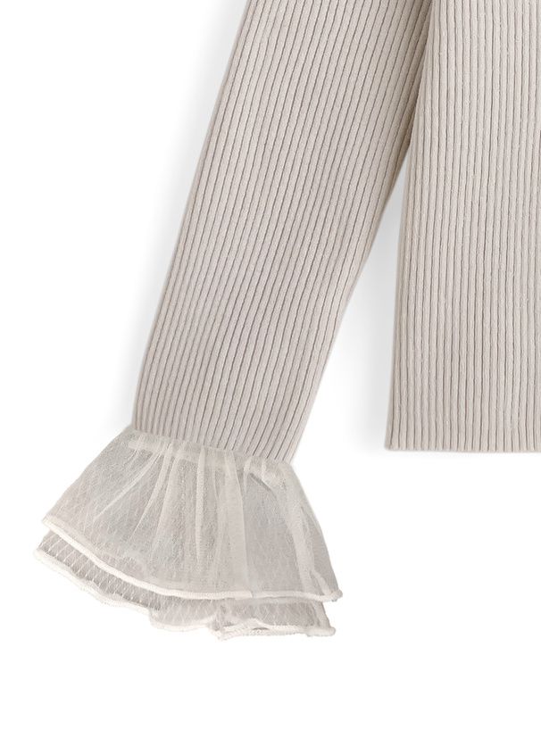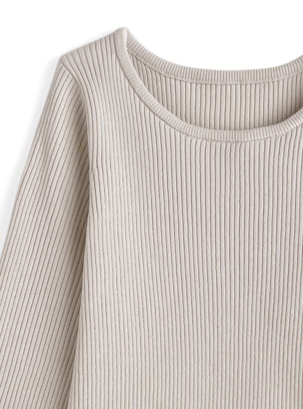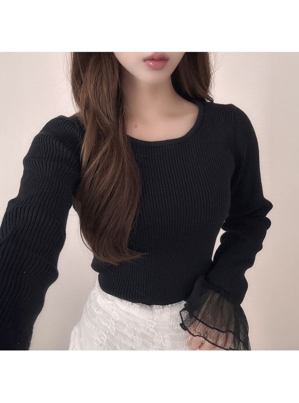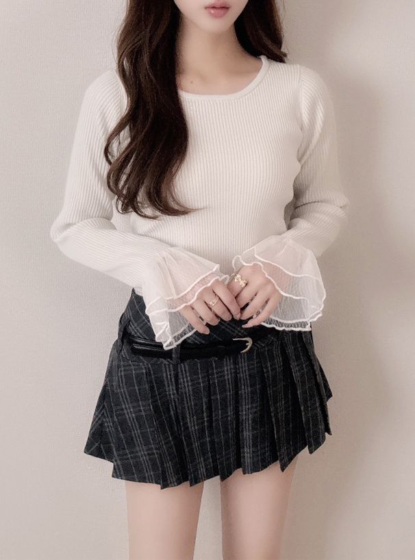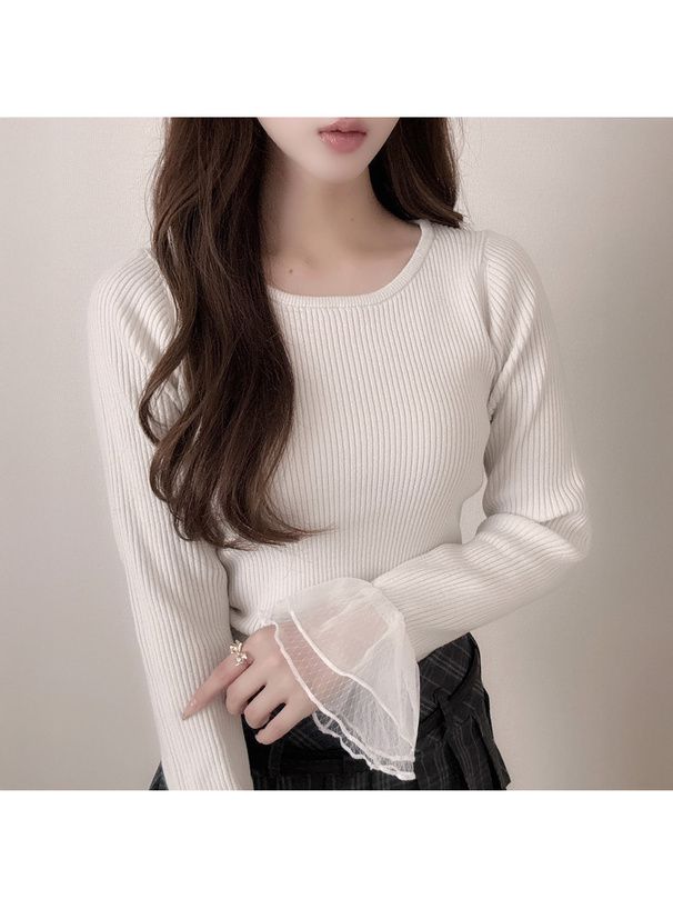 • 品名:薄紗喇叭袖羅紋圓領薄針織上衣