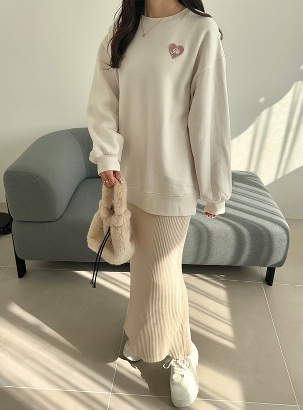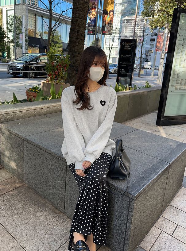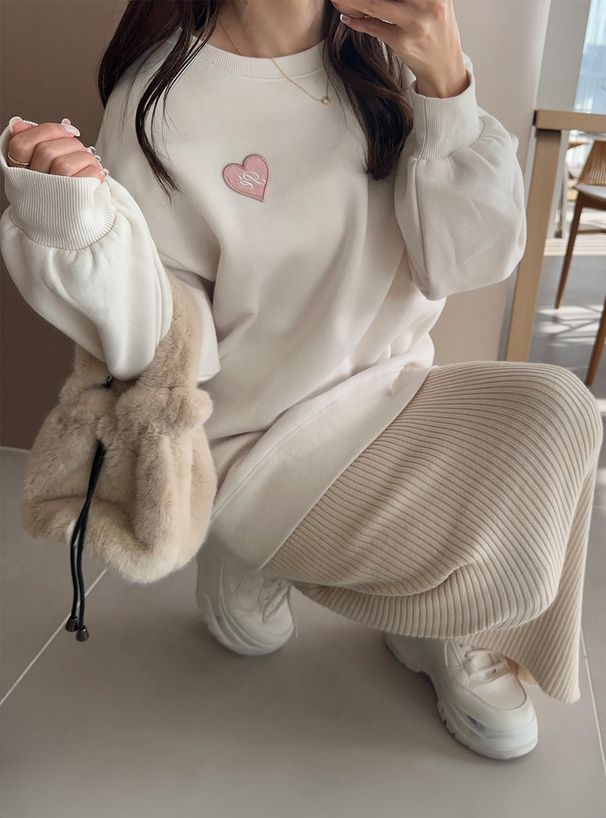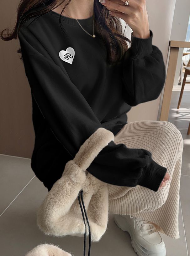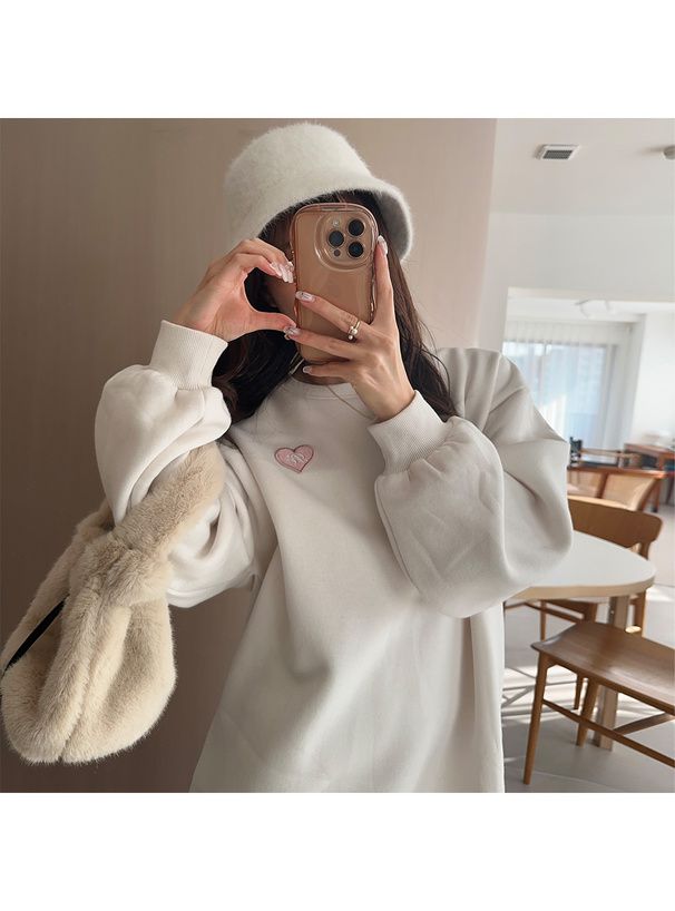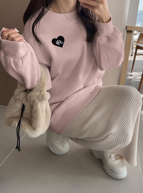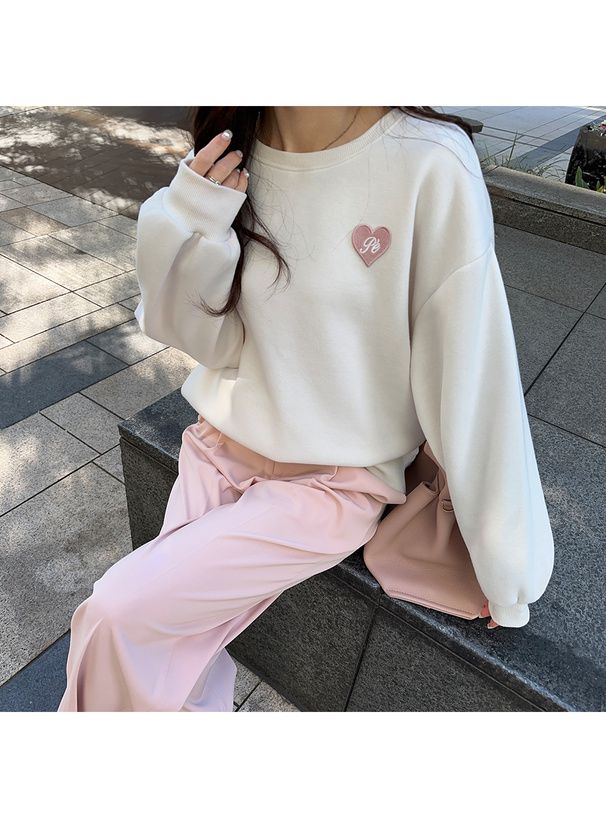 日本 GRL - 簡約胸口愛心裏起毛大學T-粉紅 (F)