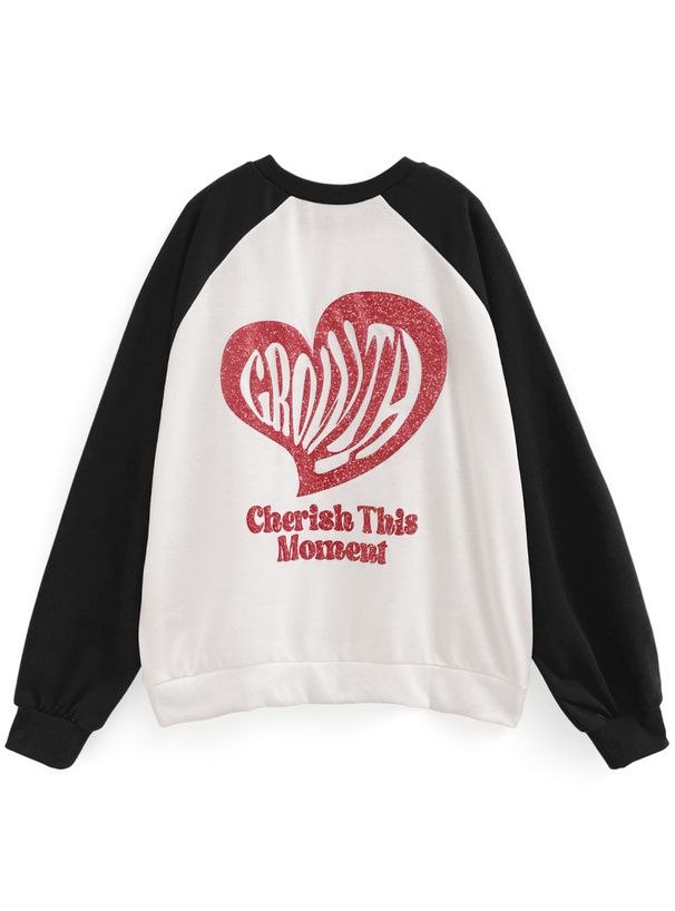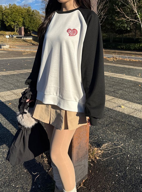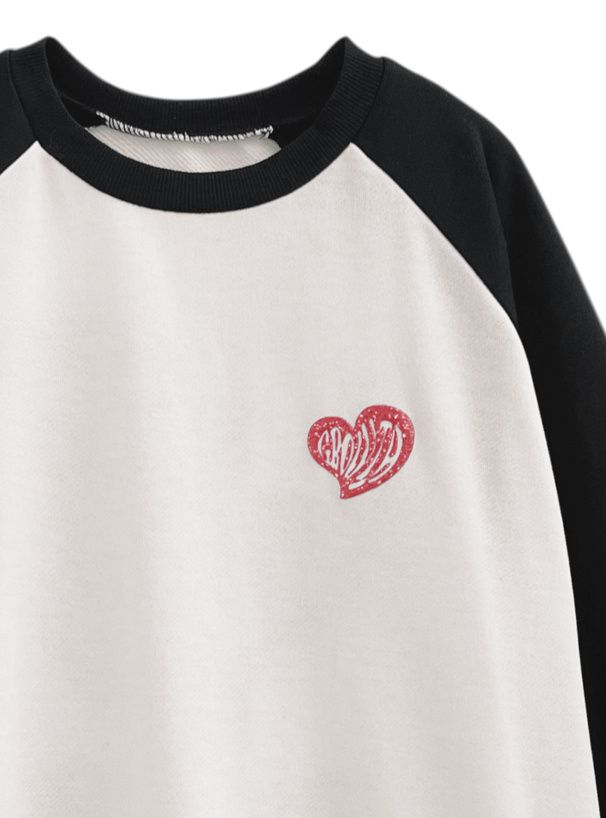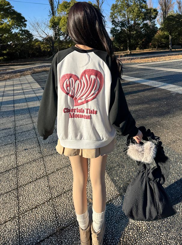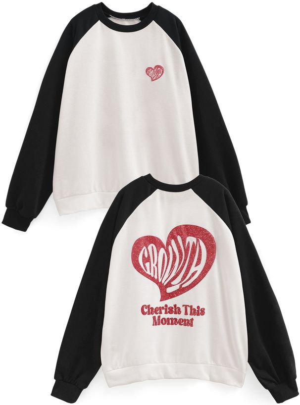 • 品名:閃亮藝術愛心印花裏毛大學T