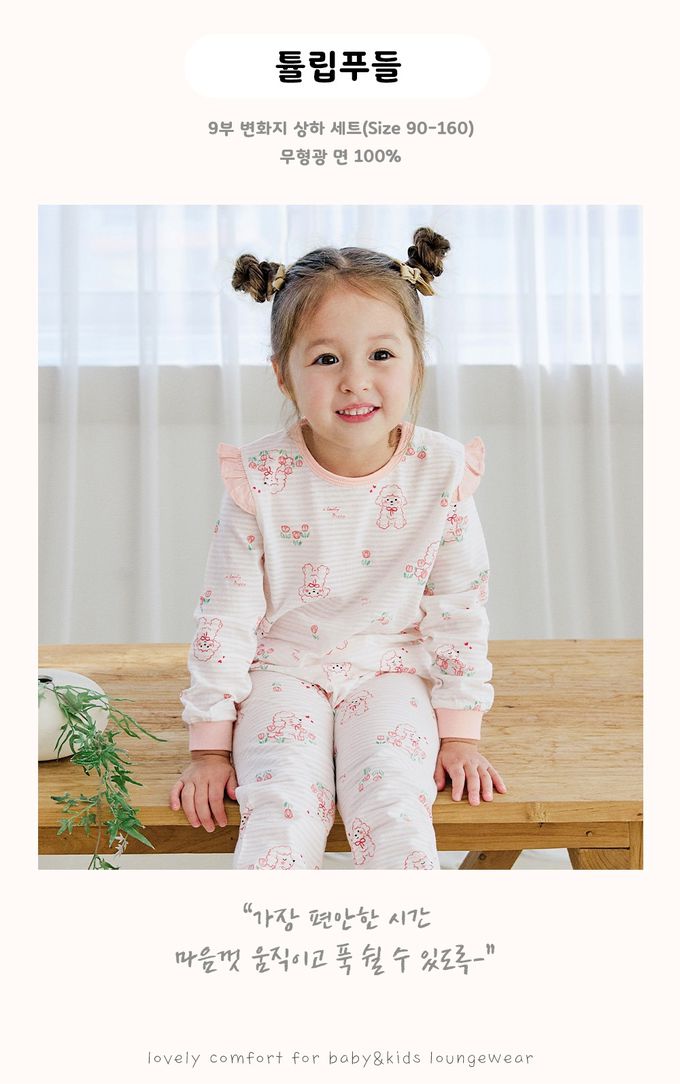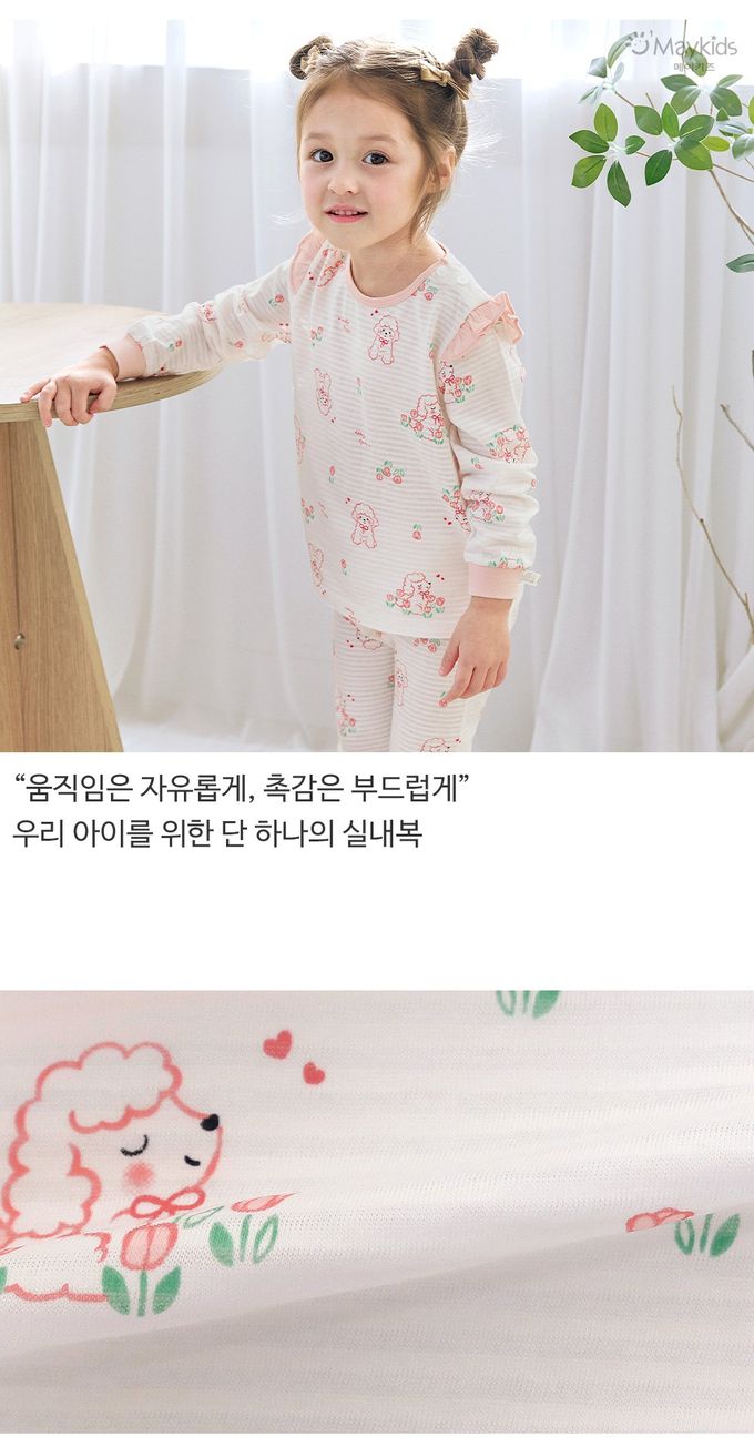 韓國 Maykids - 透氣條紋提花棉長袖家居服-鬱金香貴賓