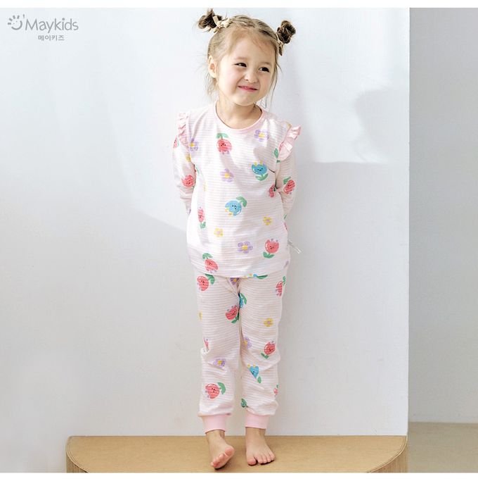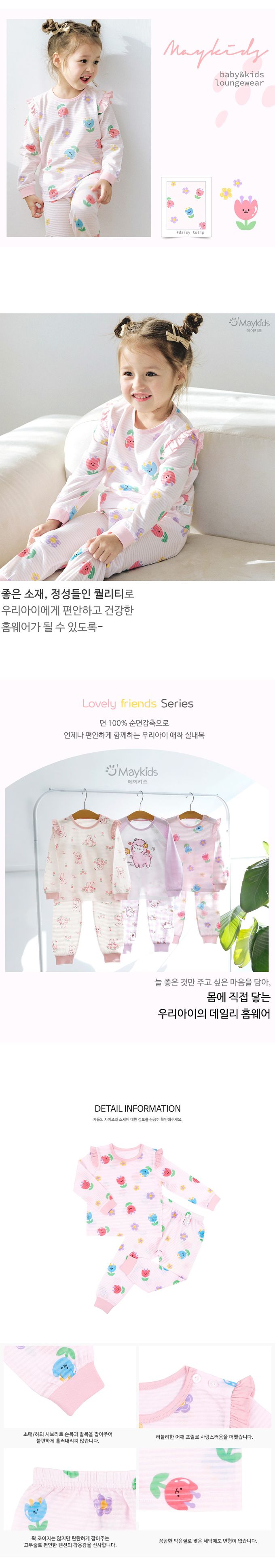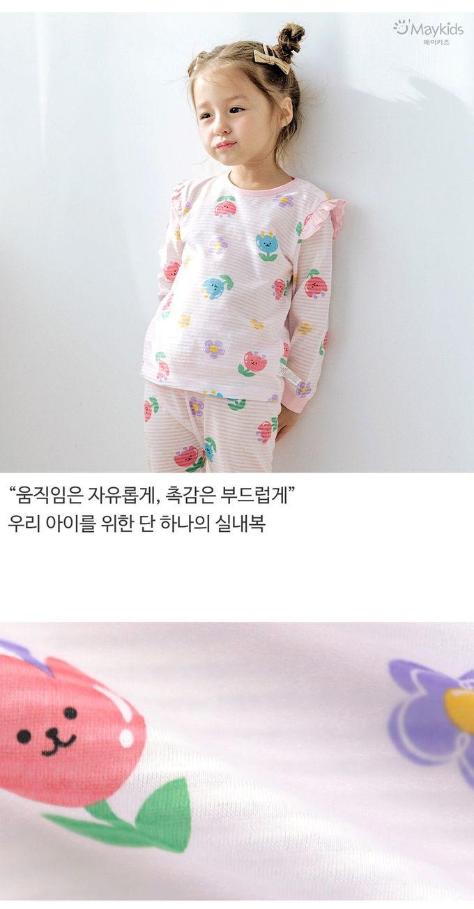 韓國 Maykids - 透氣條紋提花棉長袖家居服-春漾鬱金香-粉