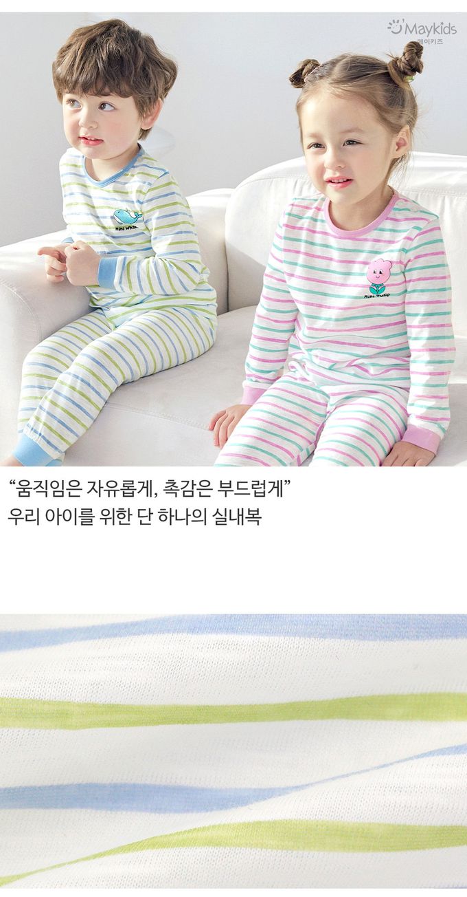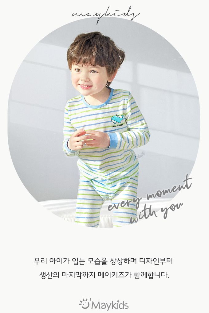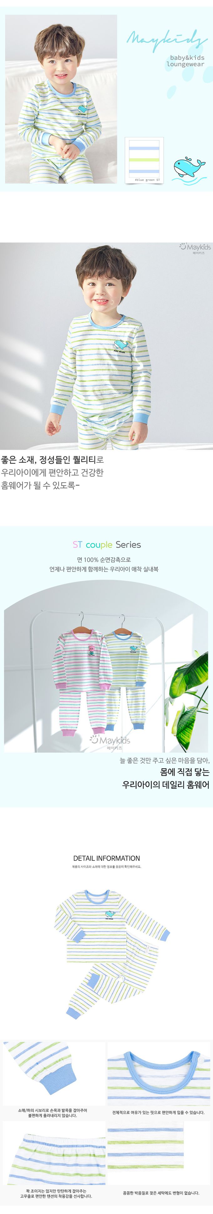 韓國 Maykids - 輕薄細柔棉長袖家居服-條紋鯨魚-藍X綠