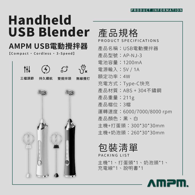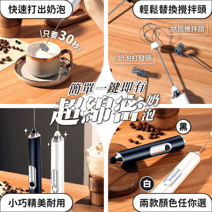 USB雙頭電動攪拌器-黑色/白色