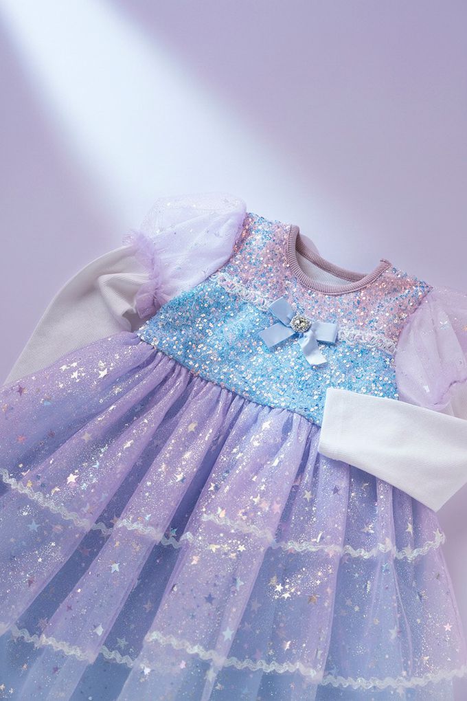 韓國 OZKIZ - 夢幻星河亮片網紗長袖公主洋裝-藍紫