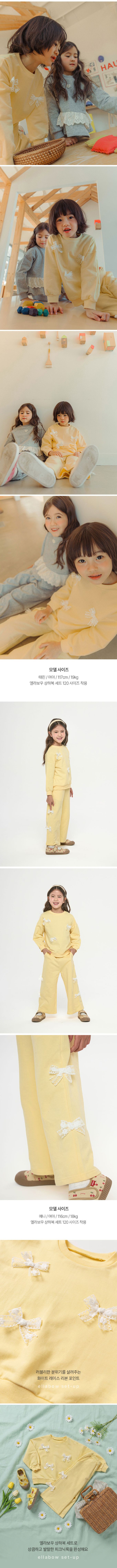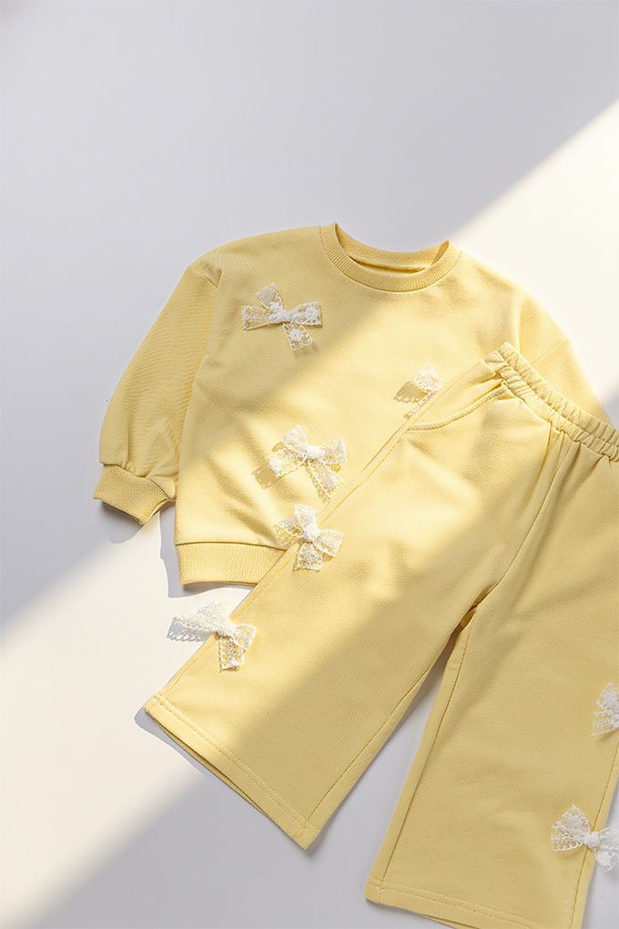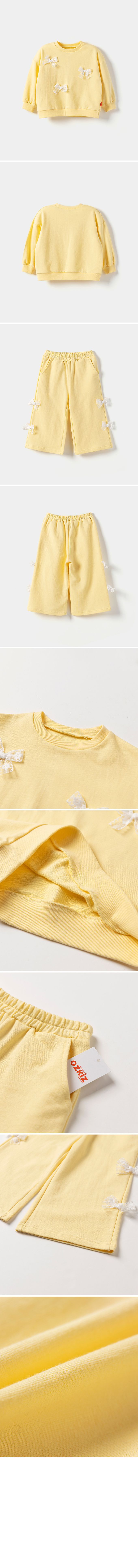 韓國 OZKIZ - 蕾絲蝴蝶結裝飾休閒長袖套裝-黃