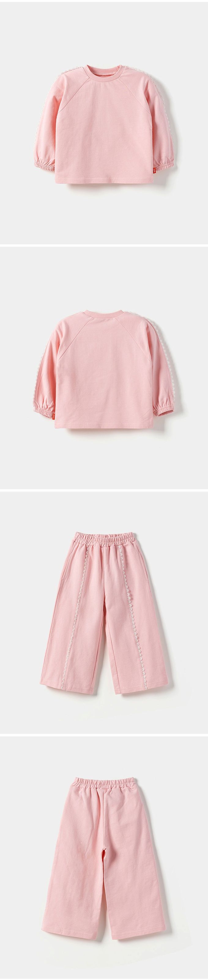 韓國 OZKIZ - 蕾絲繡鑲邊裝飾休閒長袖套裝-粉