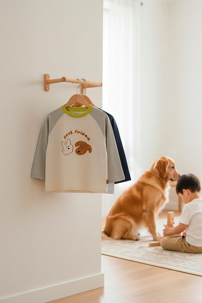 • 品名:手繪塗鴉狗狗拼色長袖上衣